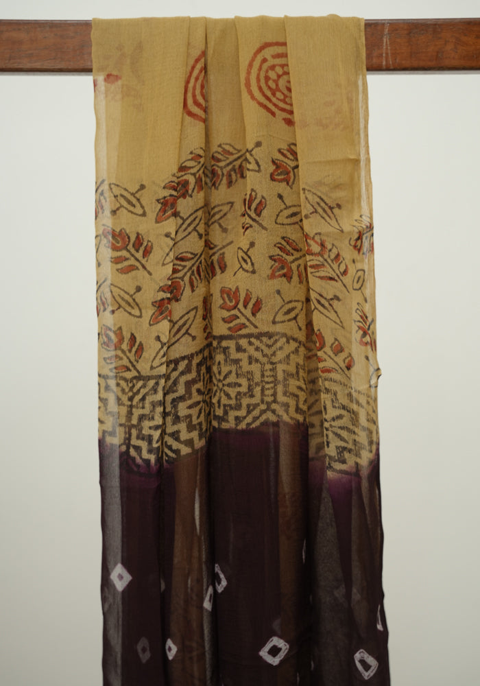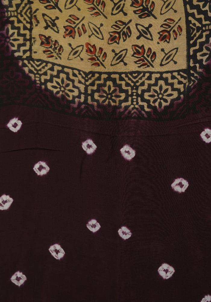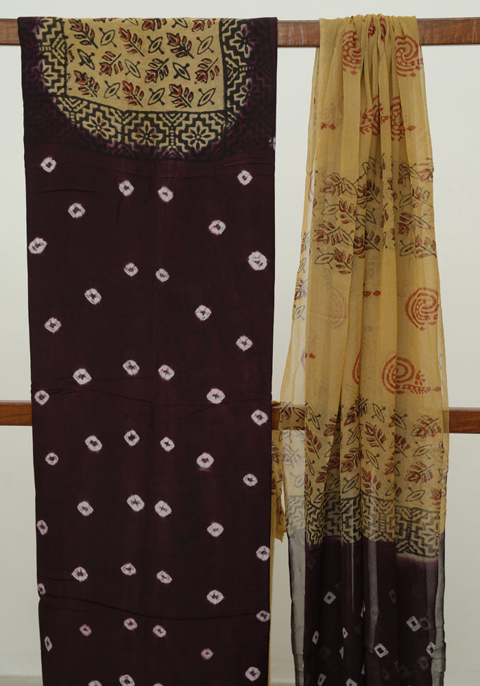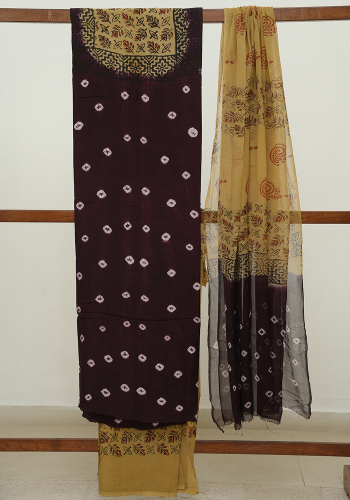 Jamun Red and Yellow Unstitched Block Printed Muslin Salwar Set With Bandini