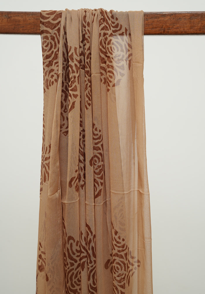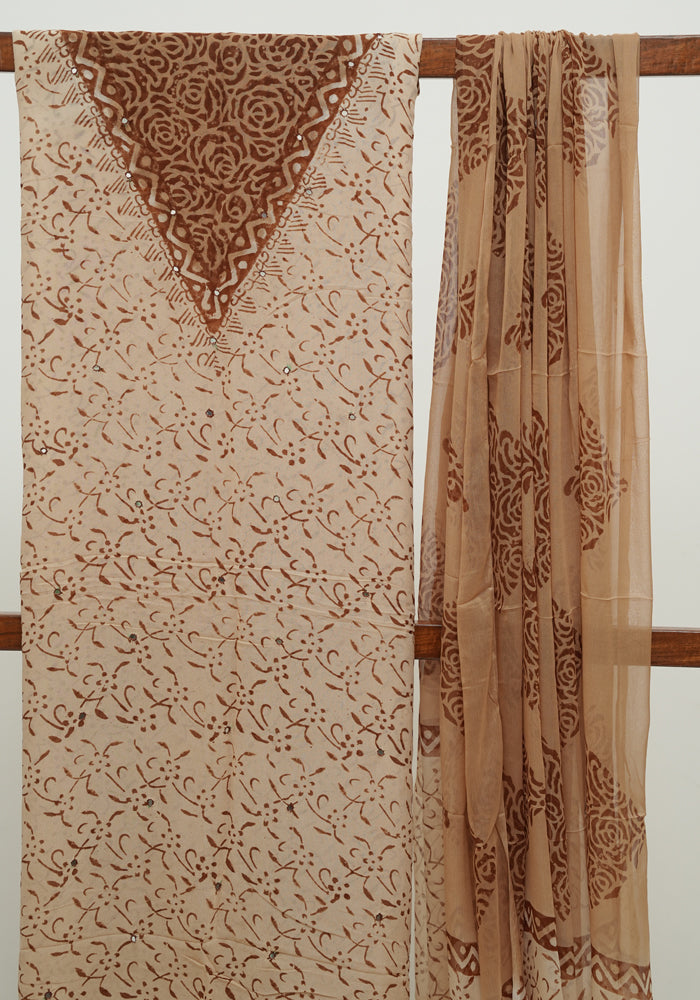 Light Brown and Brown Unstitched Georgette Salwar Set with Mirror Work