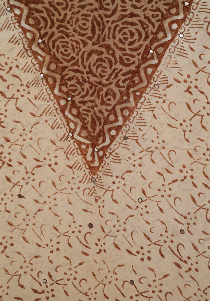 Light Brown and Brown Unstitched Georgette Salwar Set with Mirror Work is OUT OF STOCK currently and available on pre-payment only. Order now for delivery within 2 weeks.