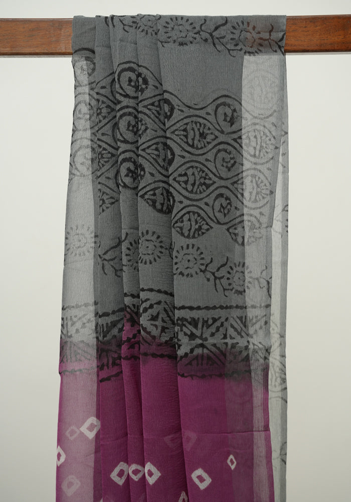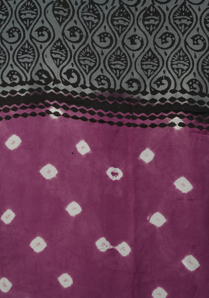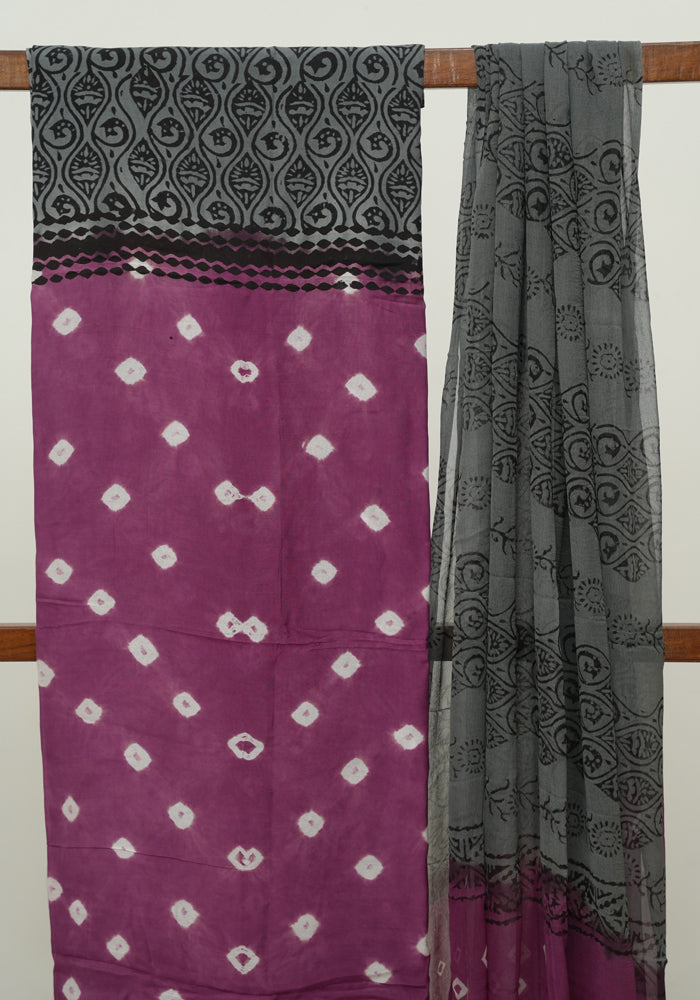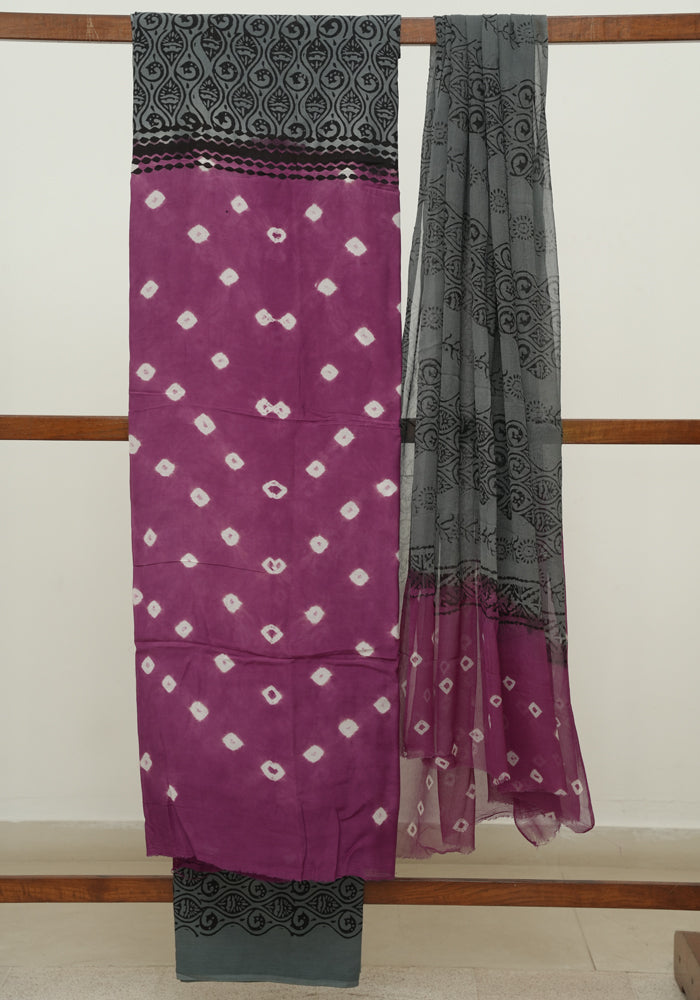 Mauve Pink and Grey Unstitched Block Printed Muslin Salwar Set With Bandini