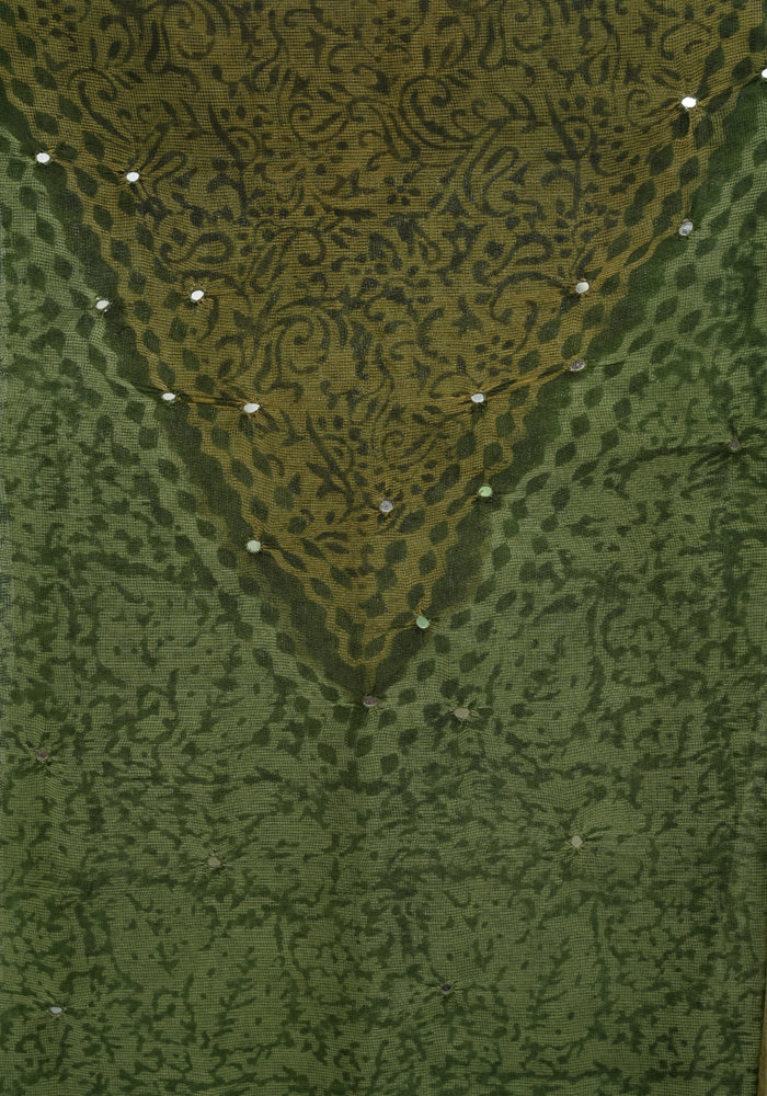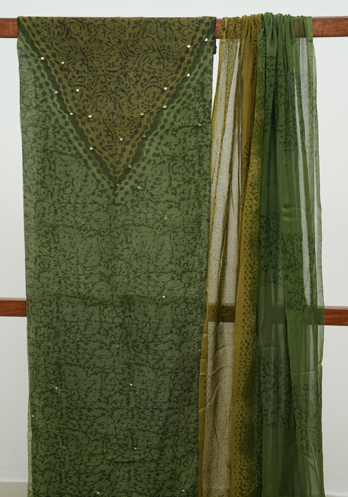 Olive Green and Mehandi Green Unstitched Super Net Salwar Set With Mirror Work