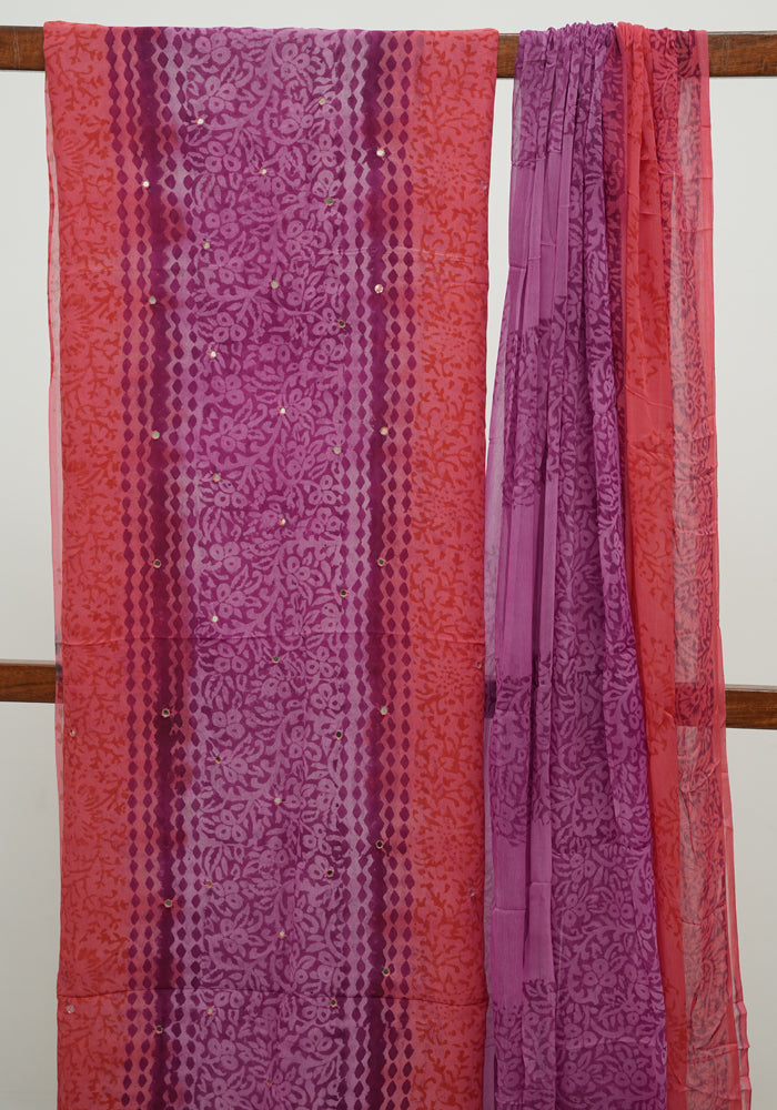 Peach and Purple Unstitched Georgette Salwar Set with Mirror Work