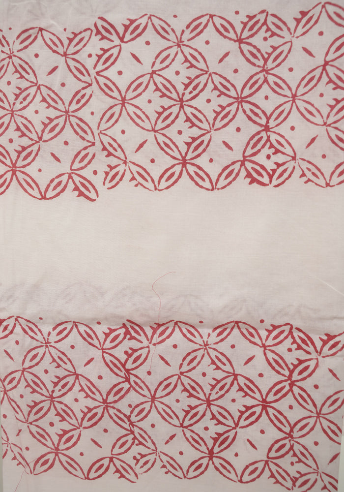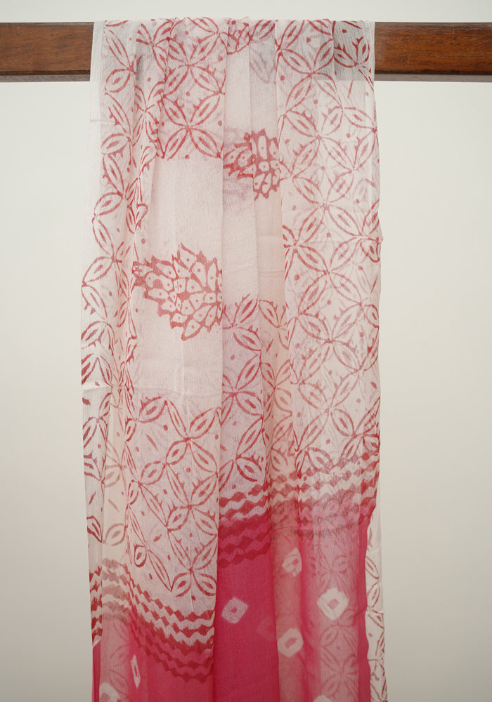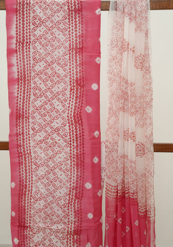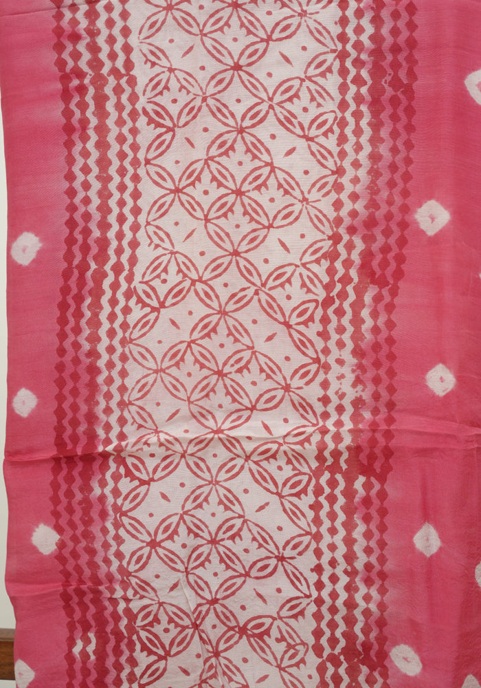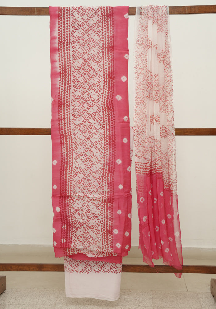Pink and White Unstitched Block Printed Muslin Salwar Set With Bandini