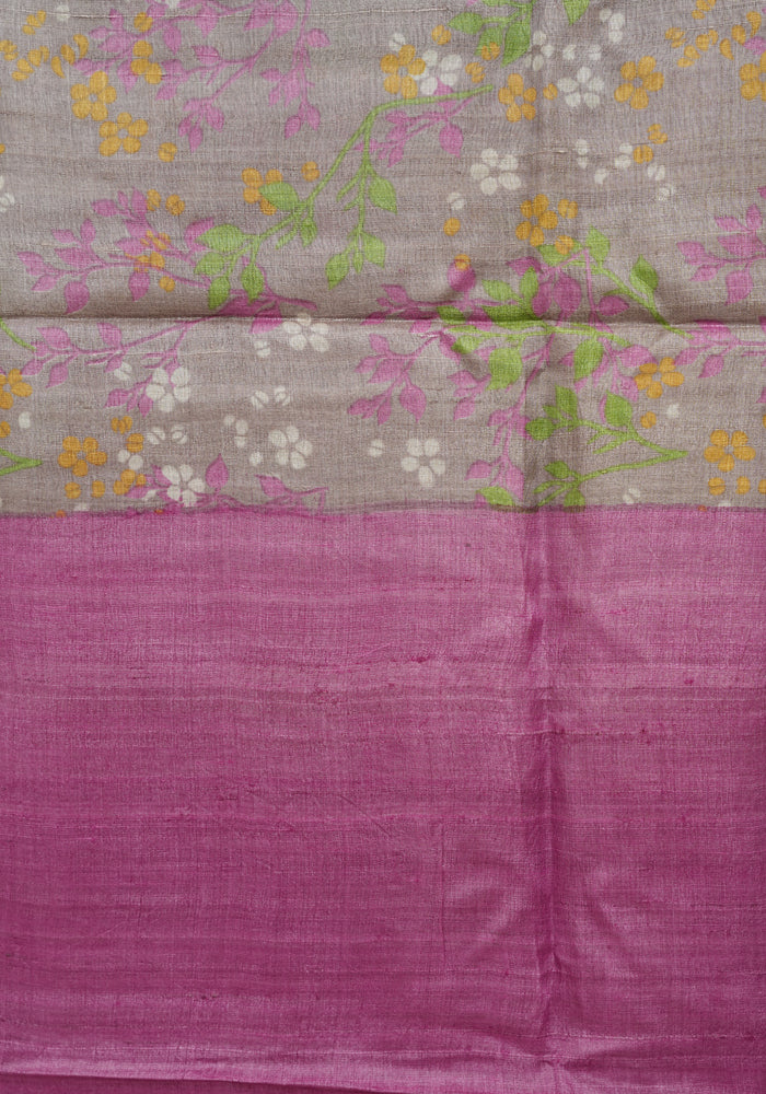 Pink Tussar Silk Unstitched Salwar Set With Digital Print