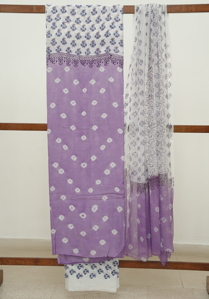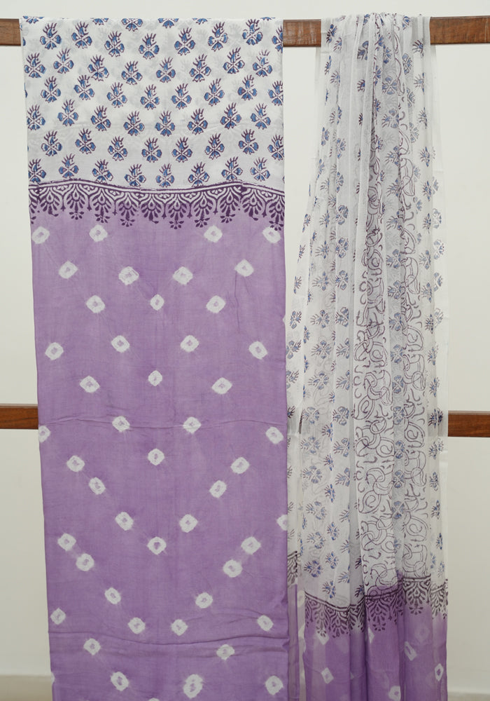 Desically Ethnic brings to you our newest offering, Unstitched Block Printed Bandini Muslin Salwar Sets . All our desgins are one of kind and they come as a 3 pc set - Top, Bottom and Dupatta.