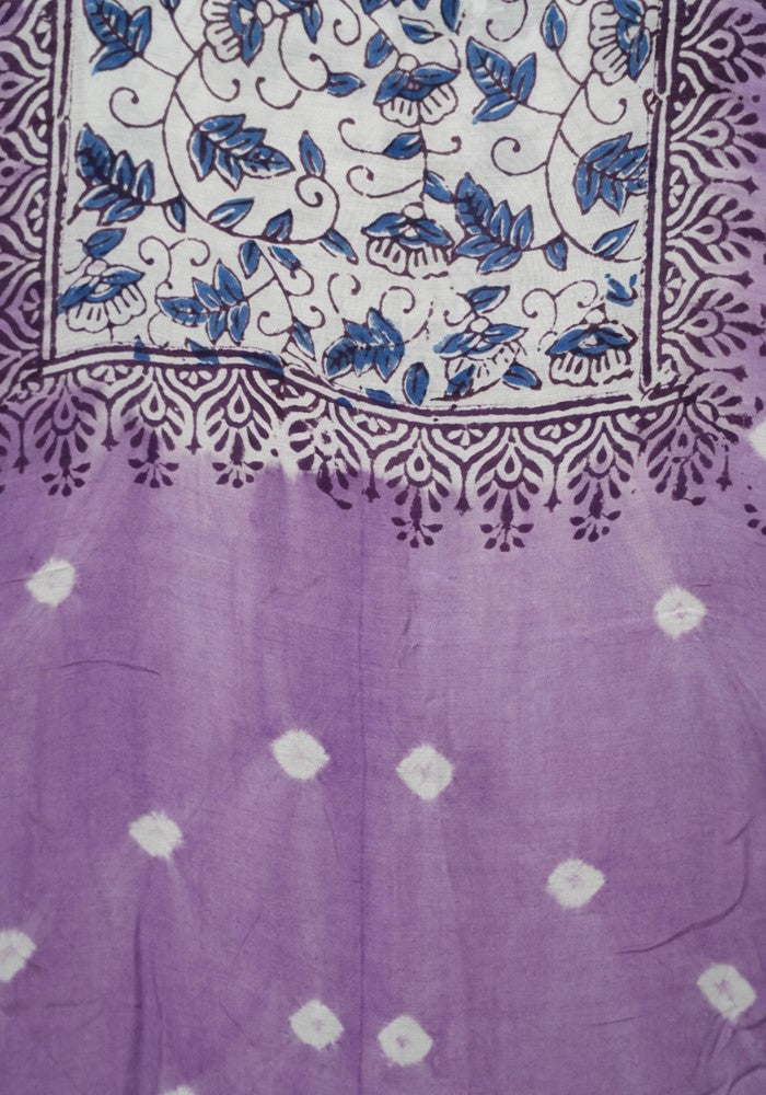 Purple and White Unstitched Block Printed Muslin Salwar Set With Bandini is OUT OF STOCK currently and available on pre-payment only. Order now for delivery within 2 weeks.