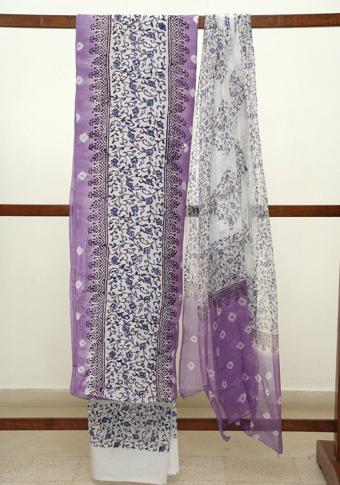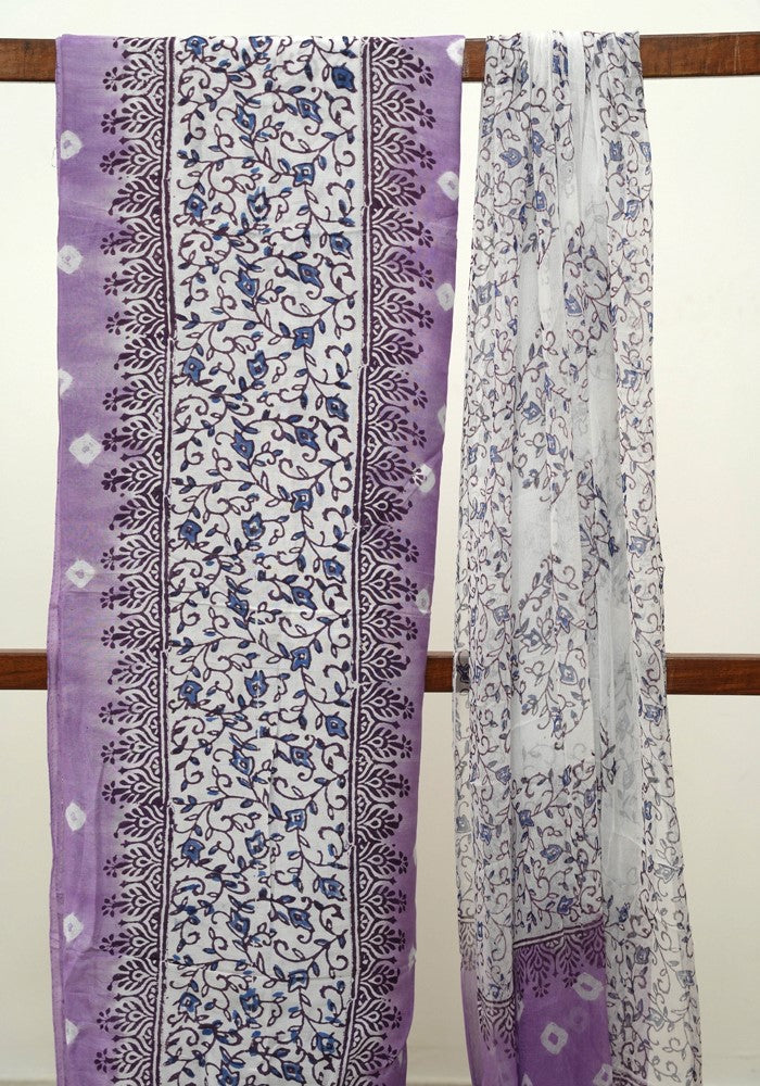 Desically Ethnic brings to you our newest offering, Unstitched Block Printed Bandini Muslin Salwar Sets . All our desgins are one of kind and they come as a 3 pc set - Top, Bottom and Dupatta.