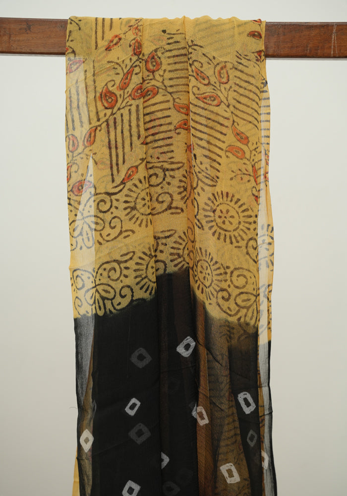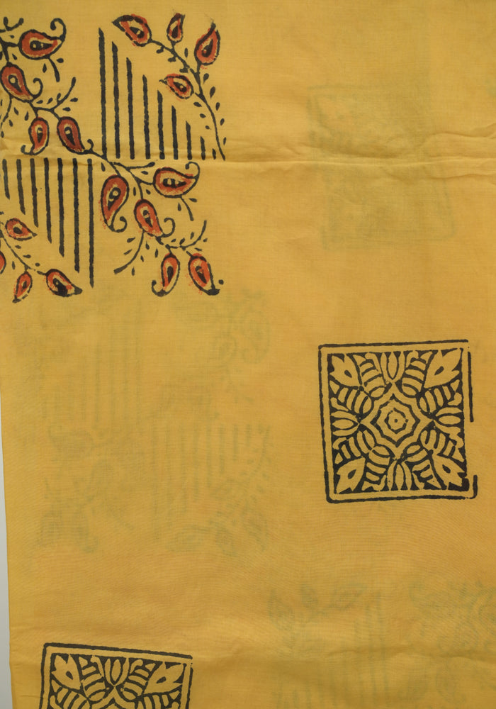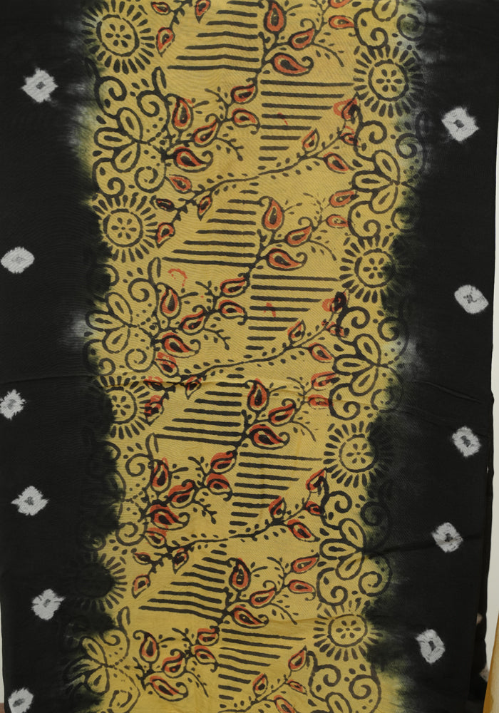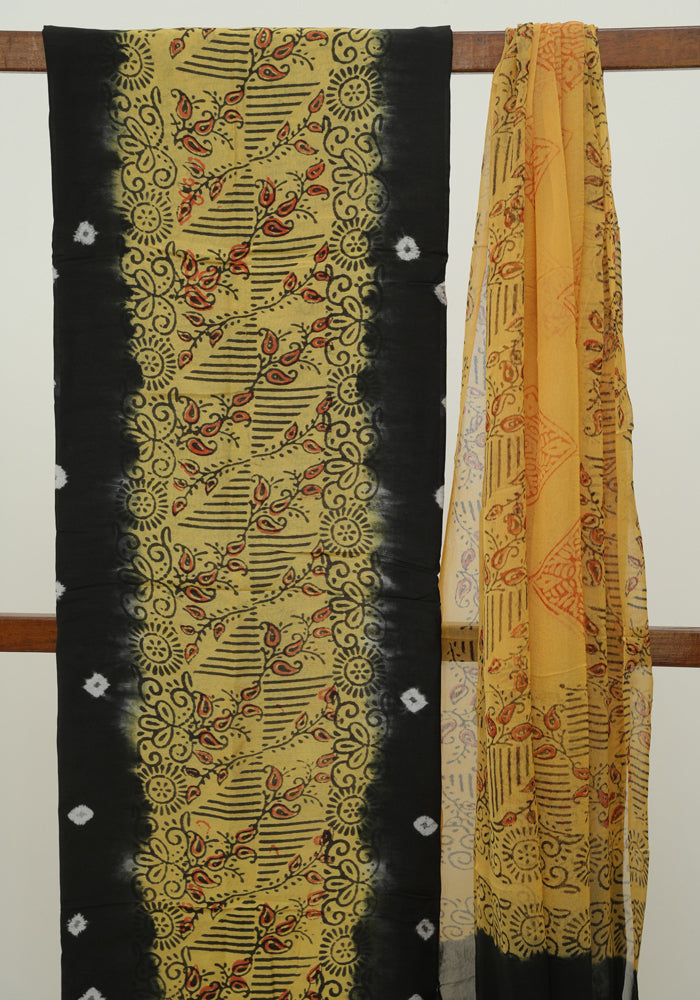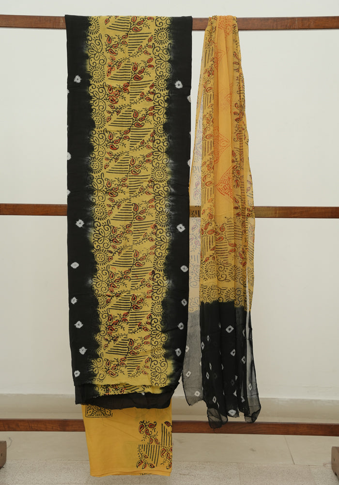 Black and Yellow Unstitched Block Printed Muslin Salwar Set With Bandini