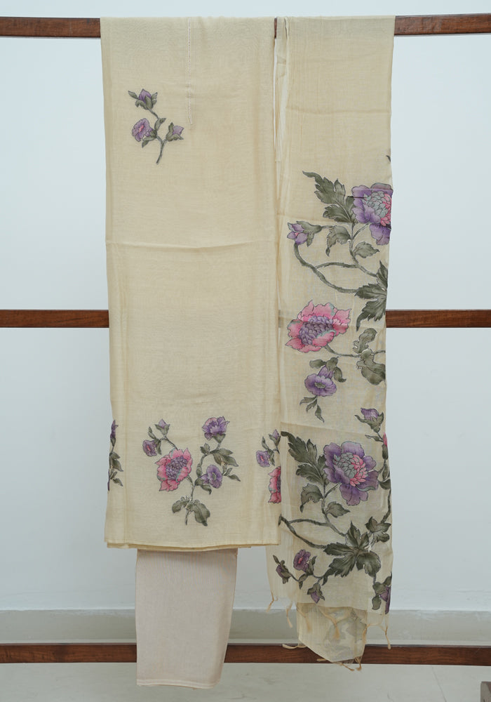 Malai Chanderi Salwar Sets with Applique Work on both Top and Dupatta