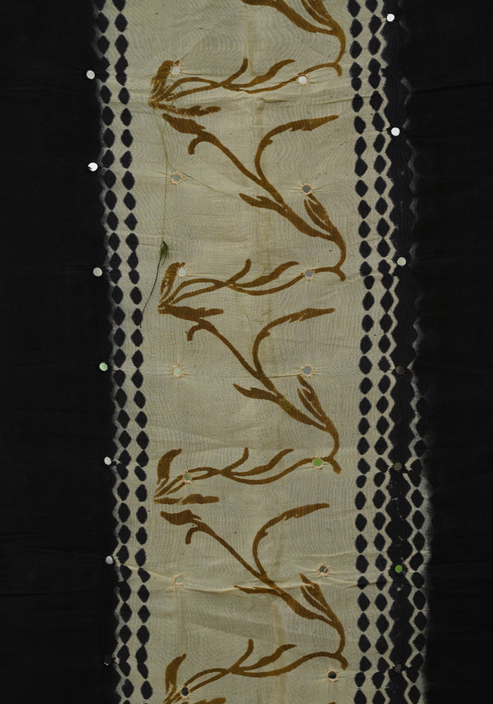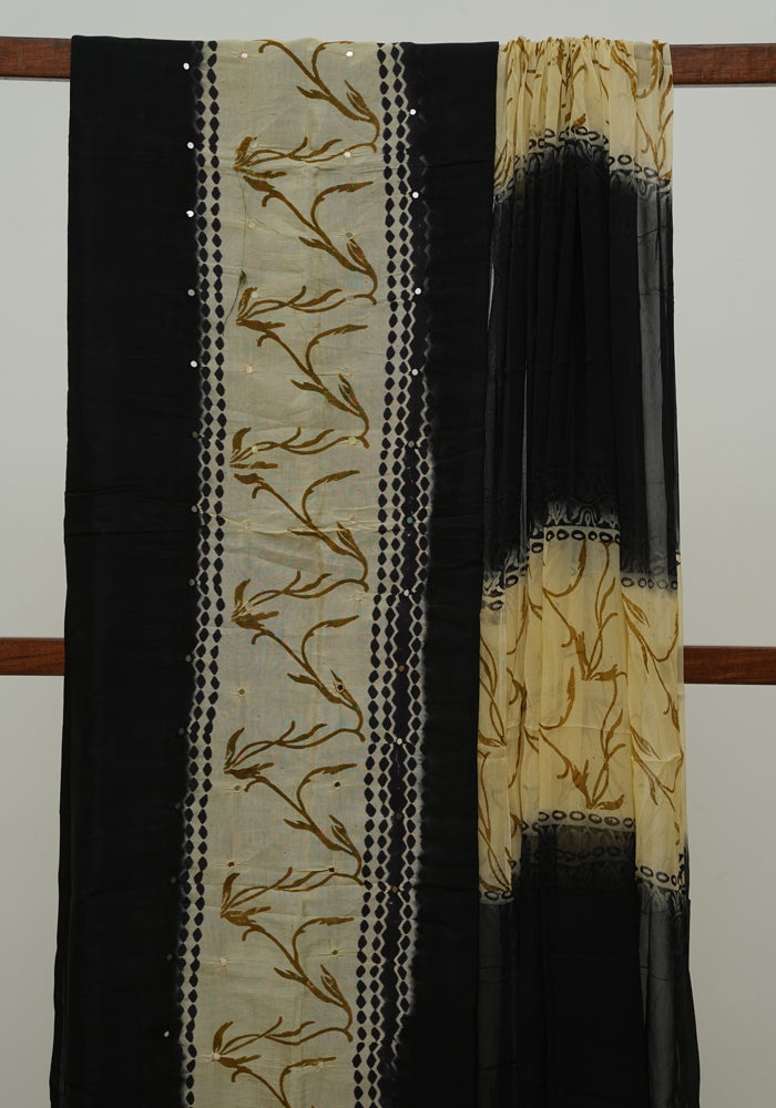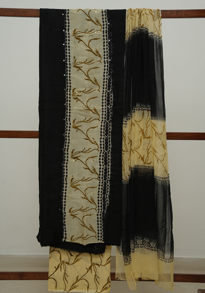 Black and Beige Unstitched Chennur Silk Salwar Set With Mirror Work is OUT OF STOCK currently and available on pre-payment only. Order now for delivery within 2 weeks.