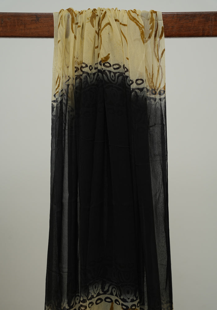 Black and Beige Unstitched Chennur Silk Salwar Set With Mirror Work