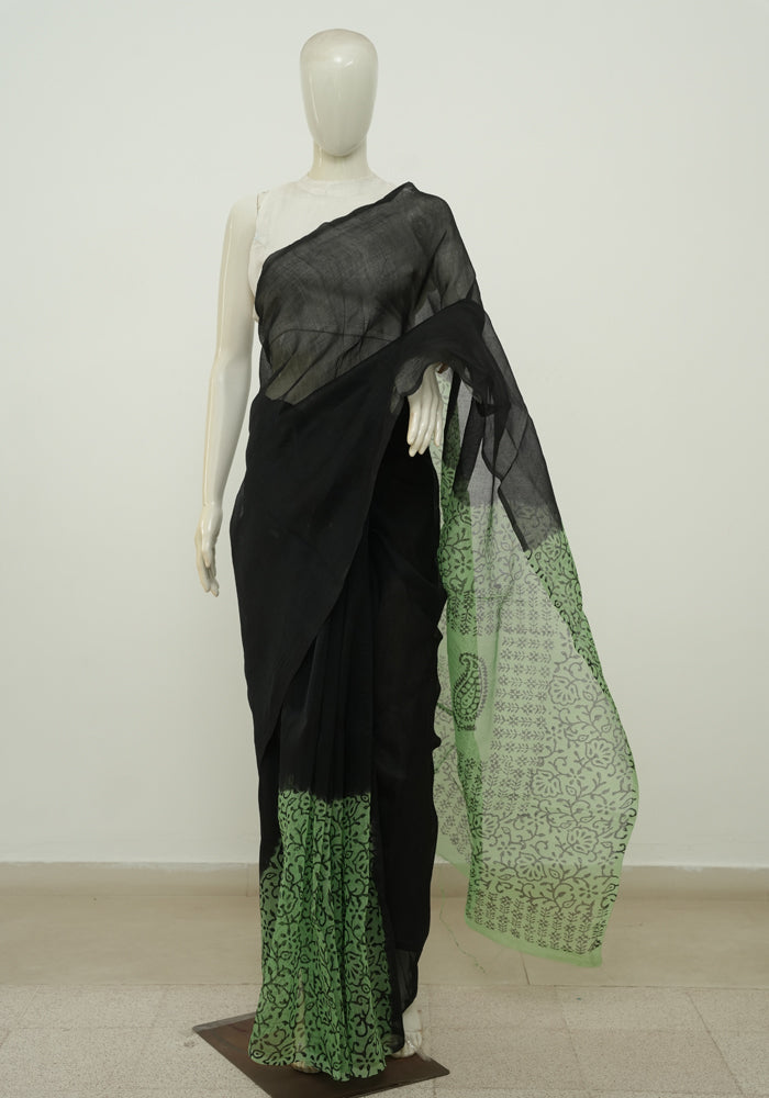 Black and Green Block printed Supernet Kota Saree is OUT OF STOCK currently and available on pre-payment only. Order now for delivery within 2 weeks.