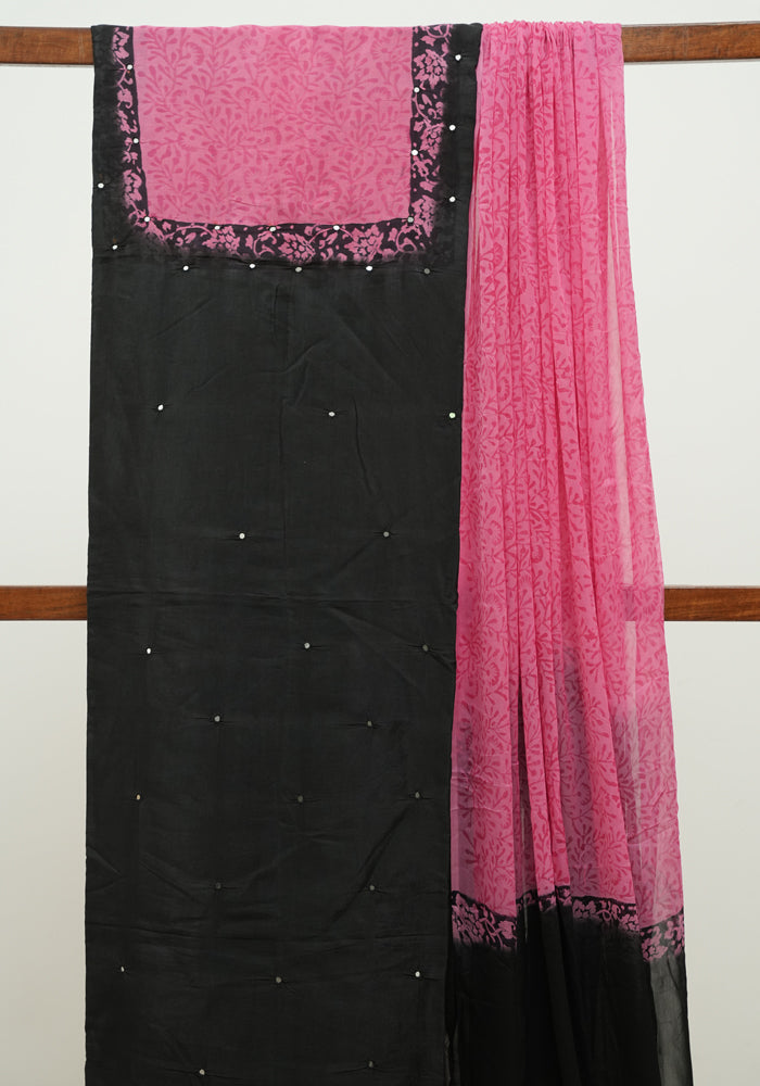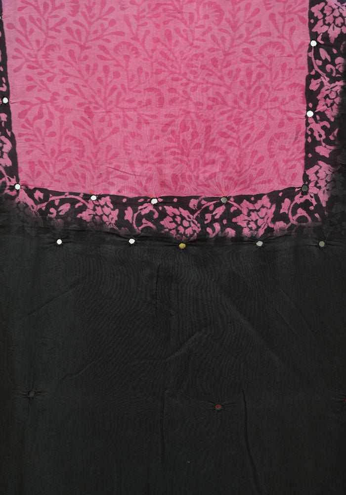 Black and Pink Unstitched Chennur Silk Salwar Set With Mirror Work is OUT OF STOCK currently and available on pre-payment only. Order now for delivery within 2 weeks.
