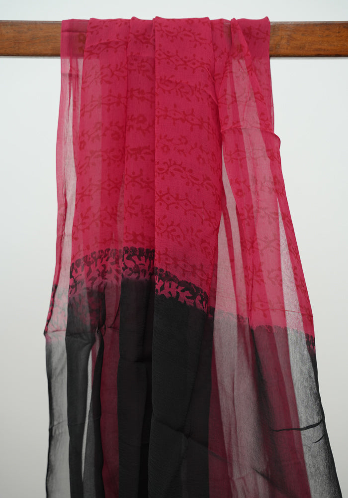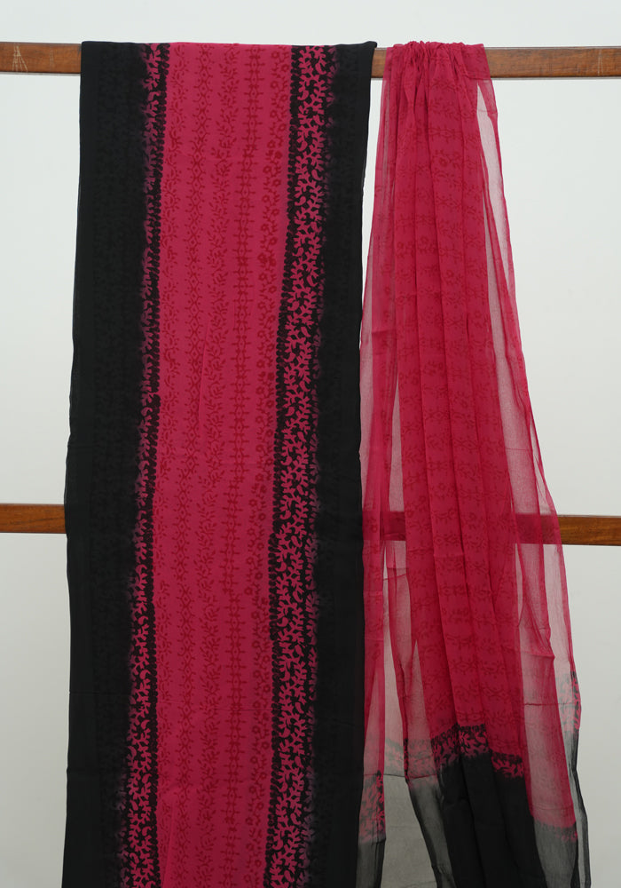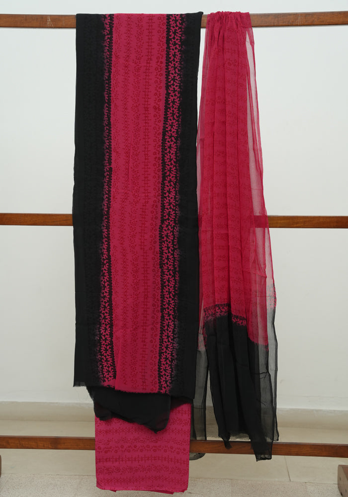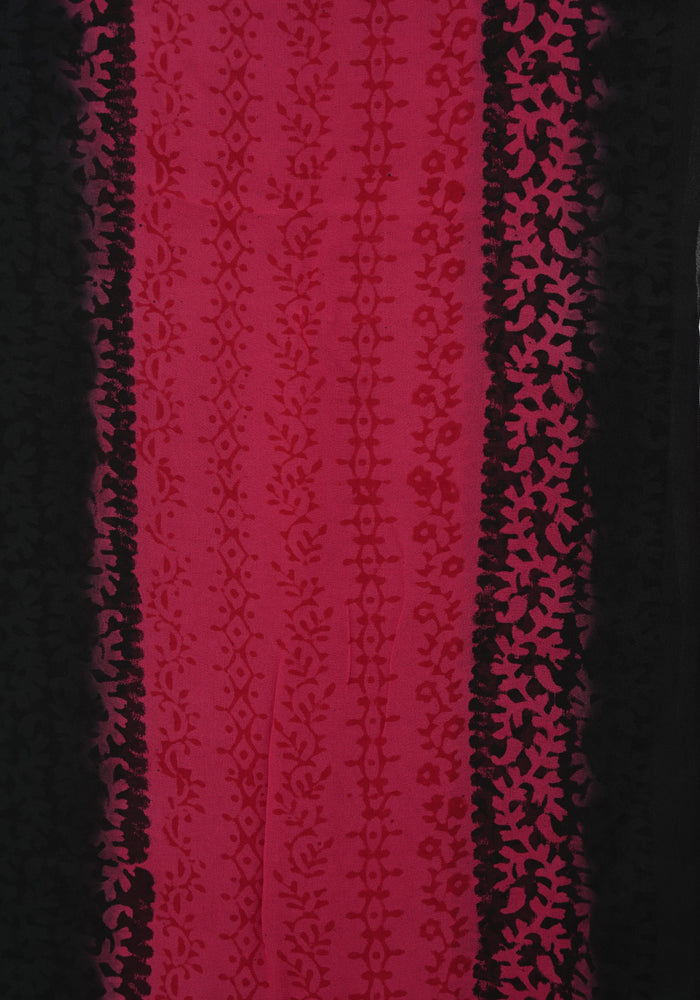 Black and Pinkish Red Unstitched Blockprinted Georgette Salwar Set