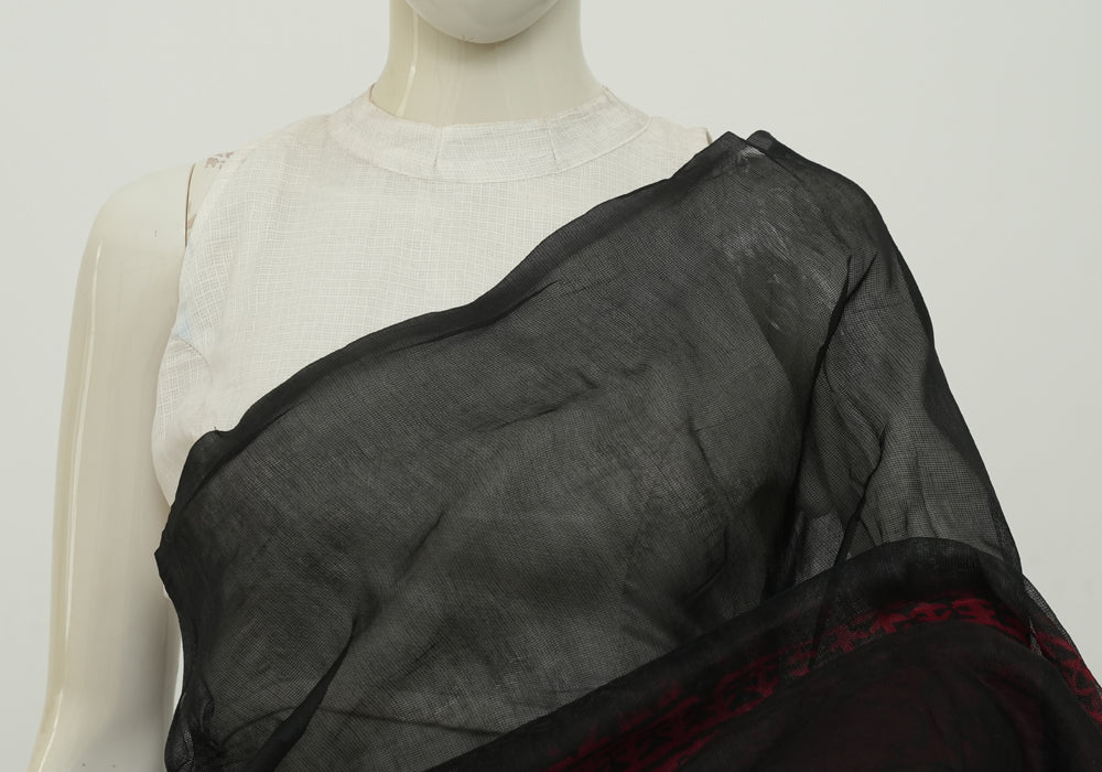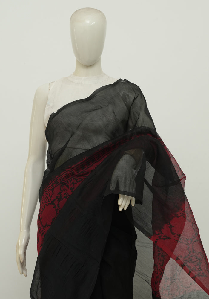 Black and Red Block printed Supernet Kota Saree is OUT OF STOCK currently and available on pre-payment only. Order now for delivery within 2 weeks.