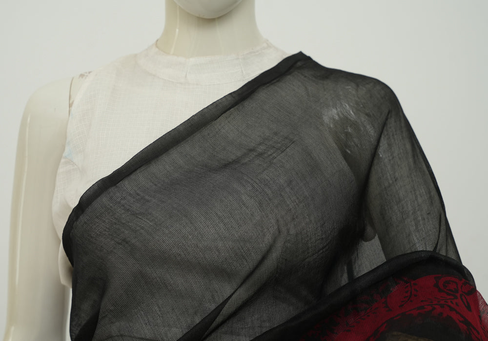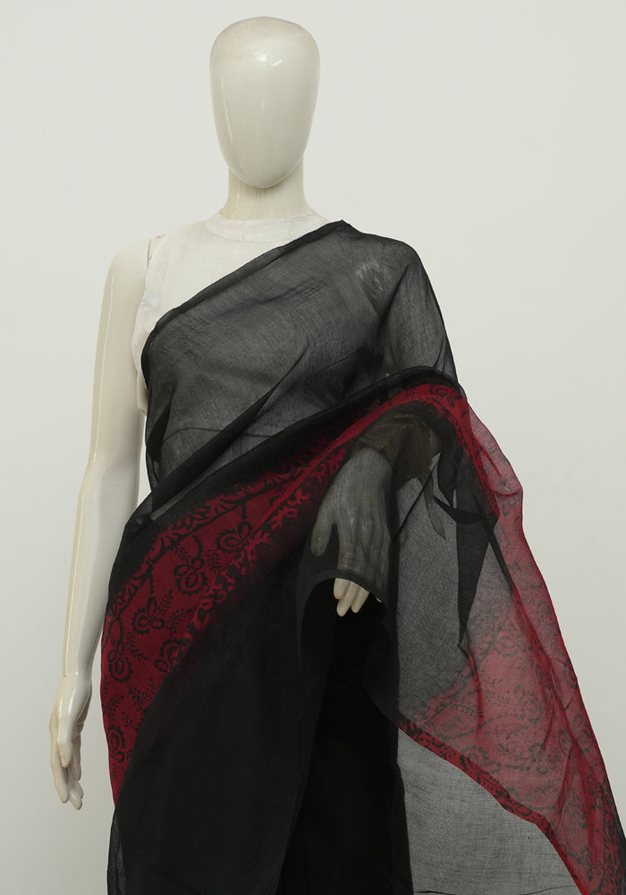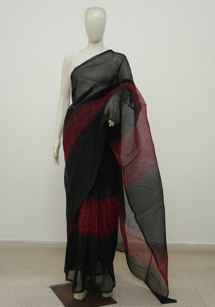 Black and Red Block printed Supernet Kota Saree is OUT OF STOCK currently and available on pre-payment only. Order now for delivery within 2 weeks.