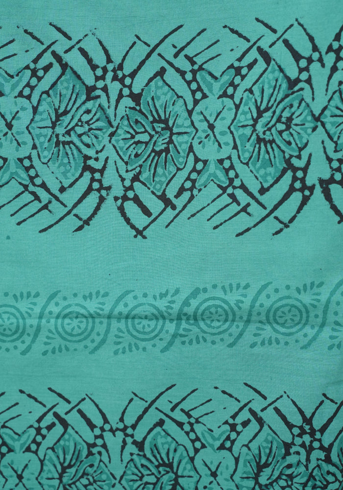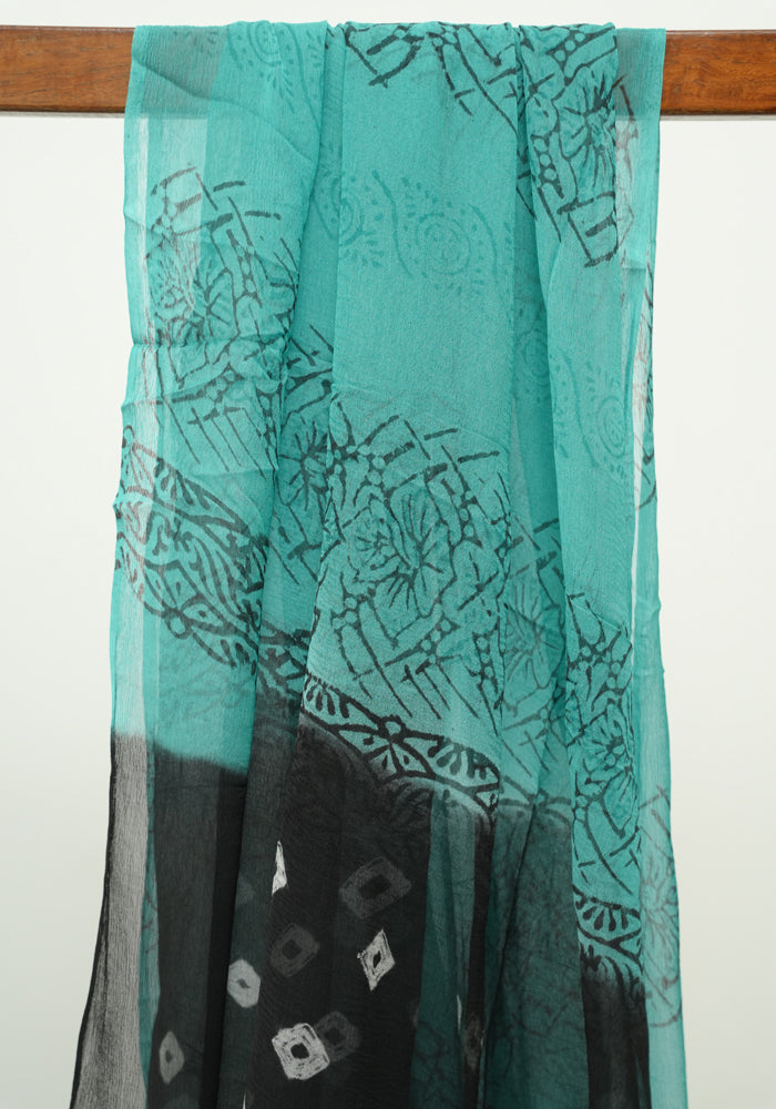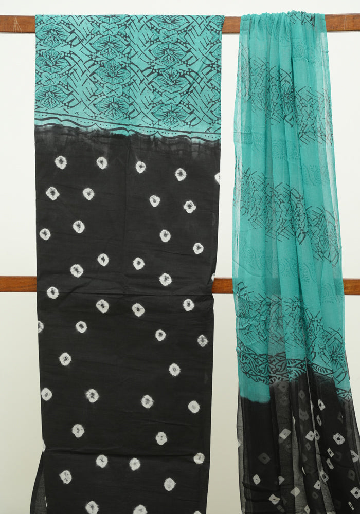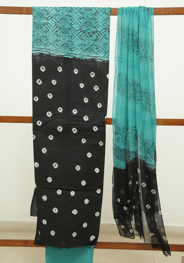 Black and Sea Green Unstitched Cotton Salwar Set With Bandini