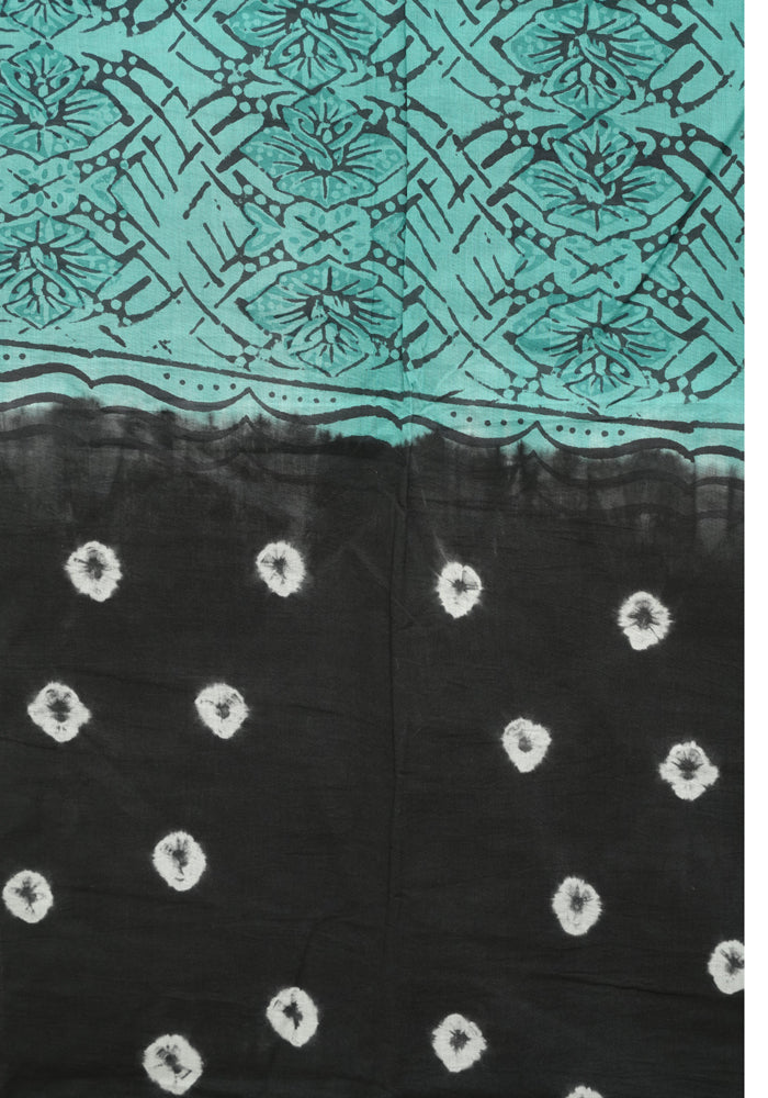Black and Sea Green Unstitched Cotton Salwar Set With Bandini is OUT OF STOCK currently and available on pre-payment only. Order now for delivery within 2 weeks.