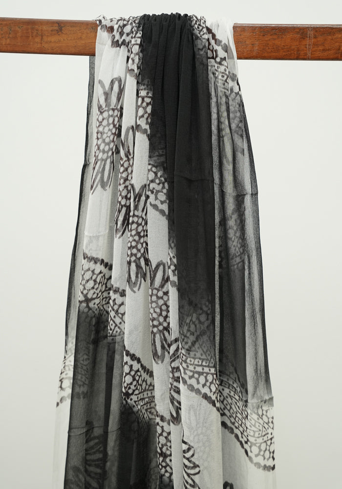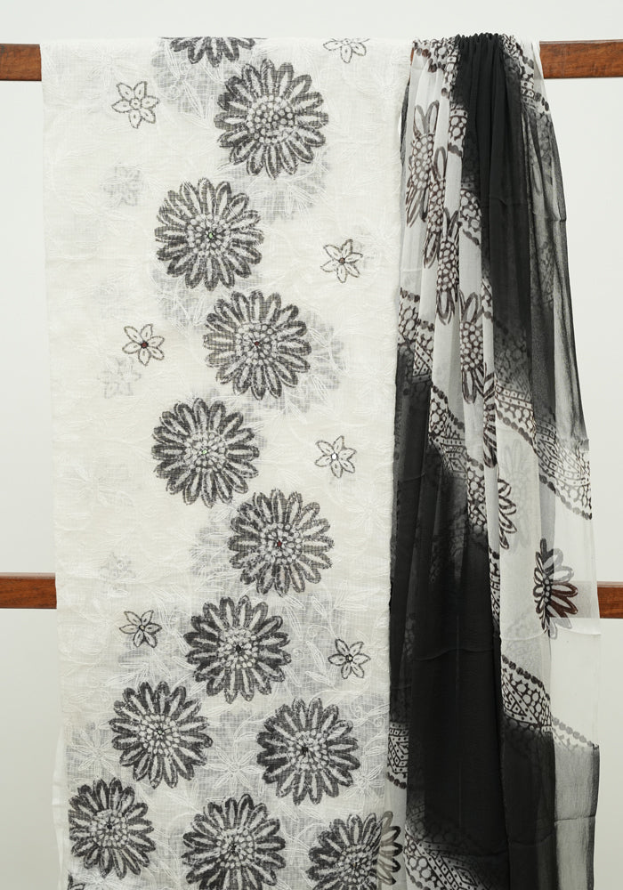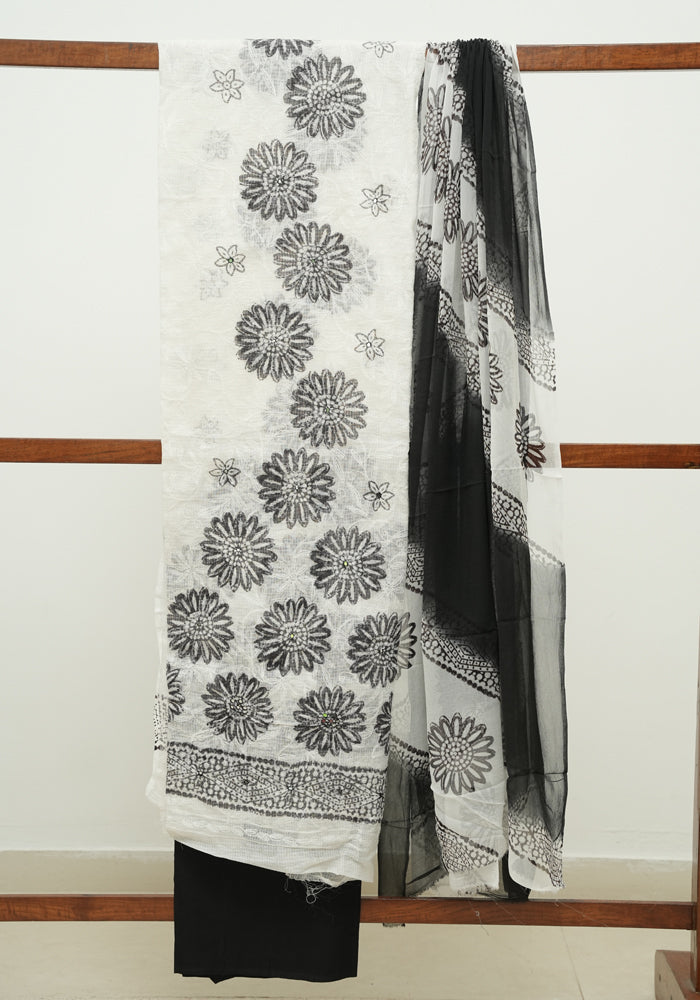 Black and White Block Printed Tepchi Kota Unstitched Salwar Set With Mirror Work