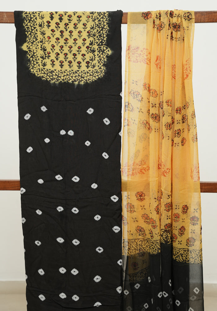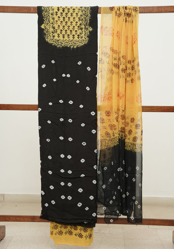 Desically Ethnic brings to you our newest offering, Unstitched Block Printed Bandini Muslin Salwar Sets . All our desgins are one of kind and they come as a 3 pc set - Top, Bottom and Dupatta.