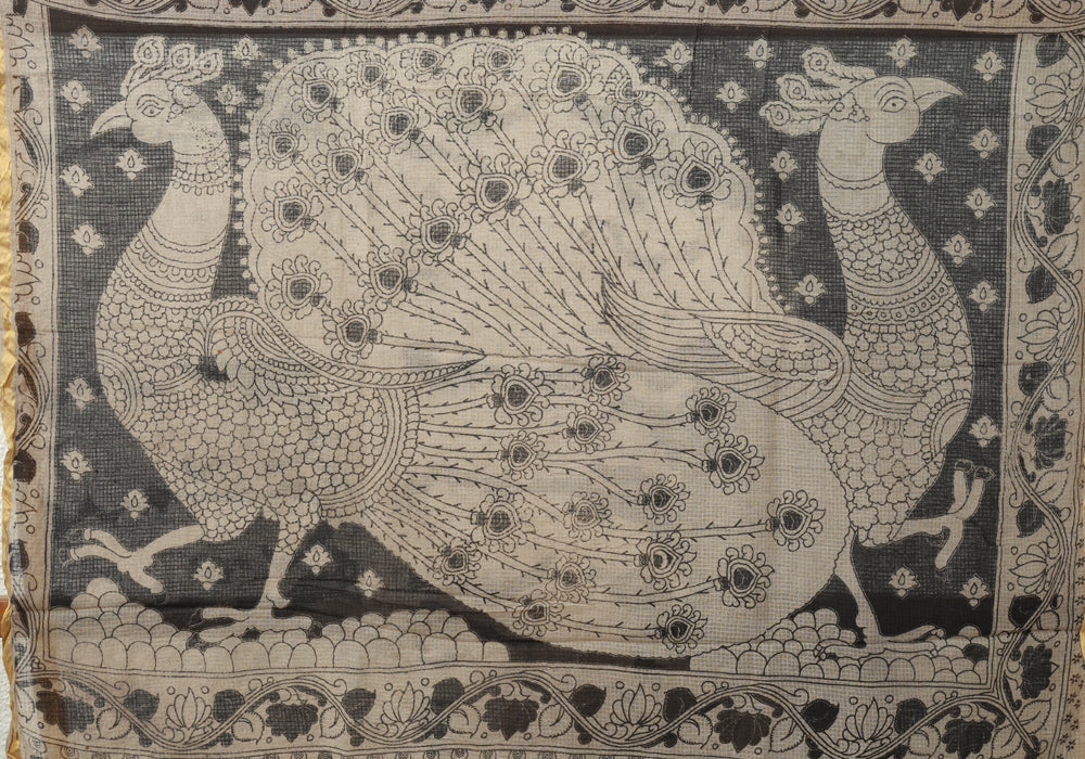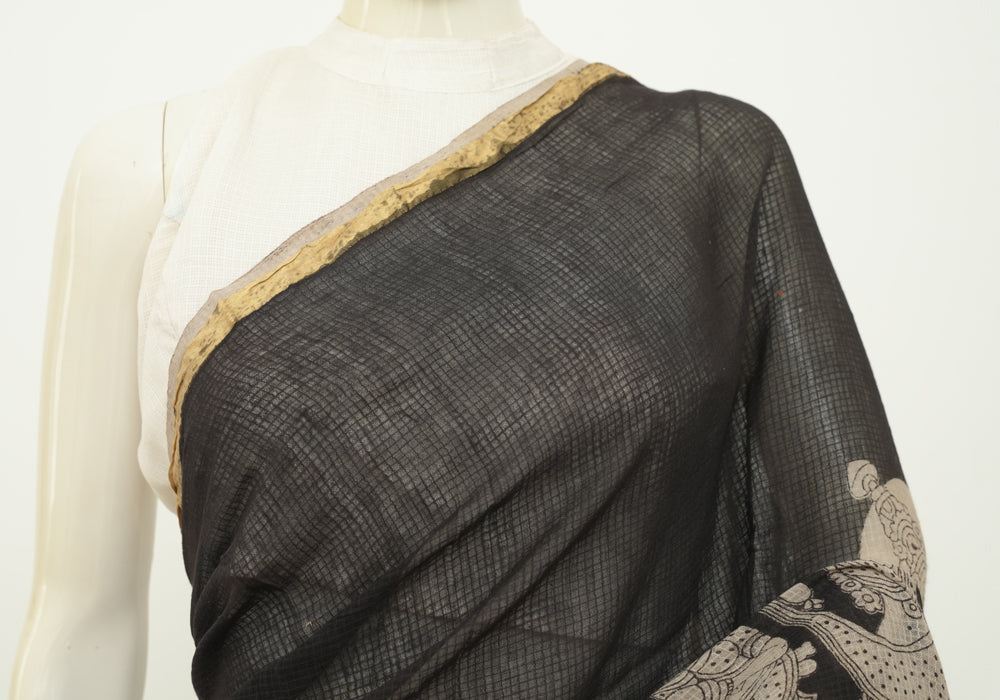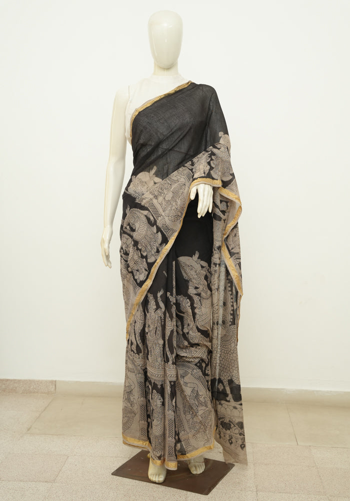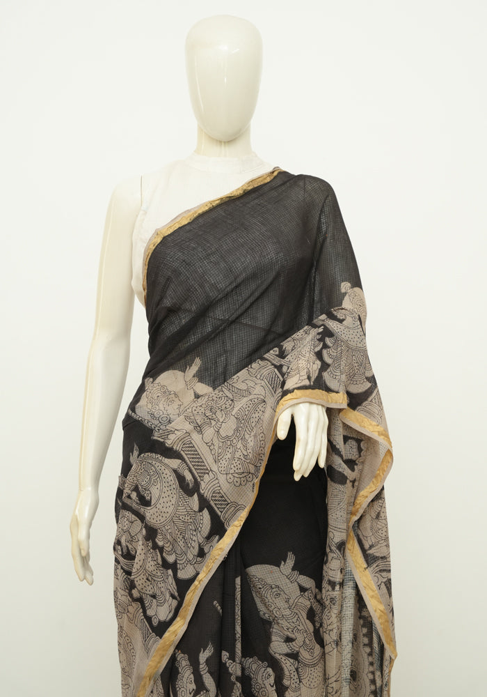 Black Cotton Saree with Kalamkari Print