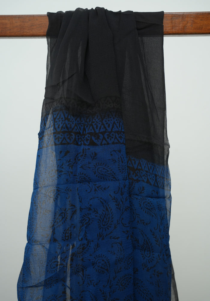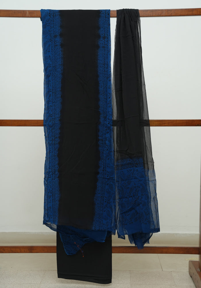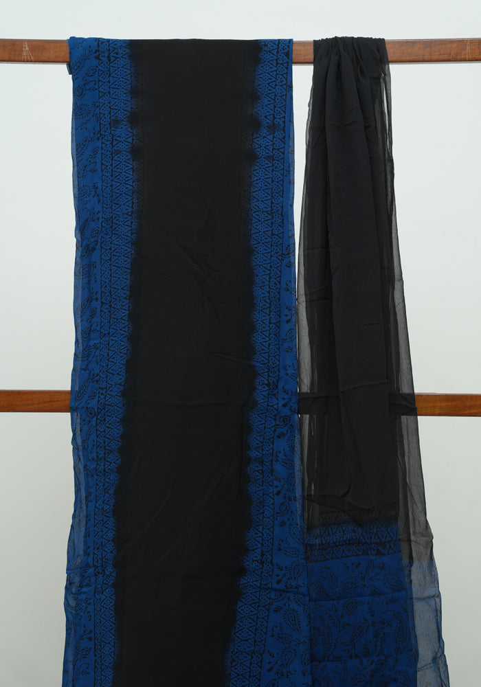 Blue and Black Unstitched Blockprinted Georgette Salwar Set