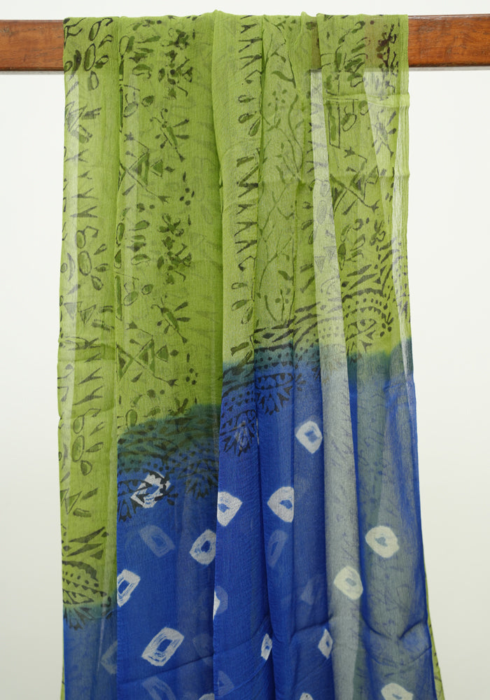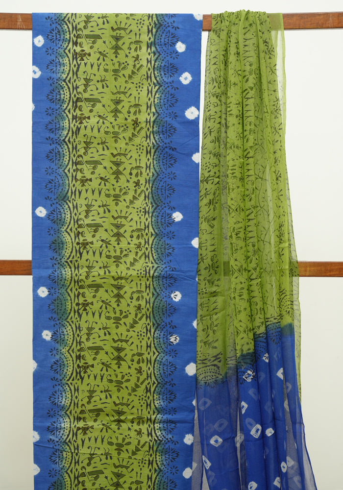 Blue and Mehandi Green Unstitched Cotton Salwar Set With Bandini