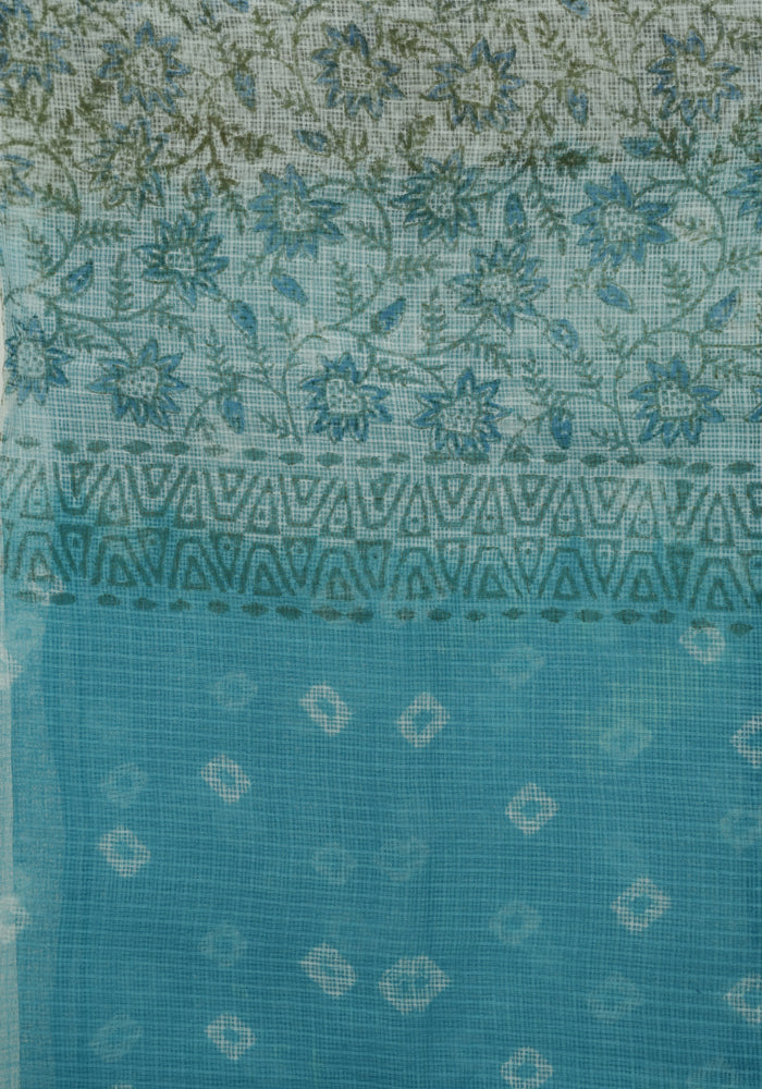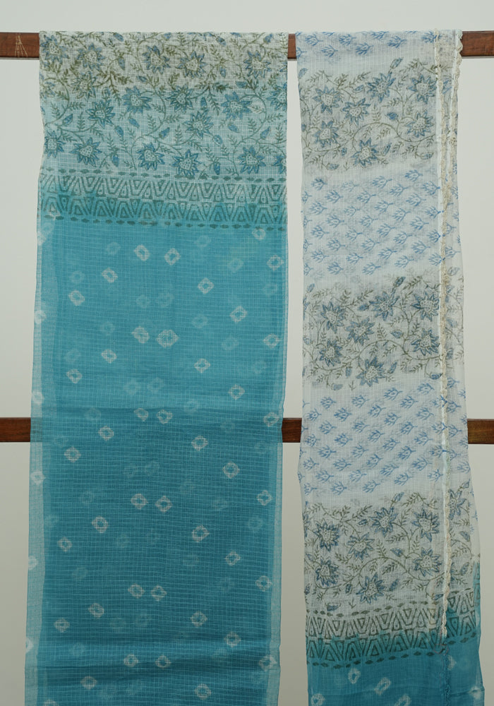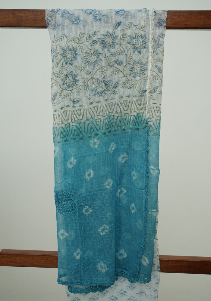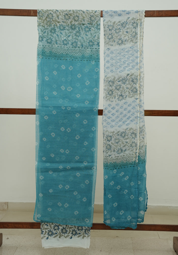 Blue and White Unstitched Block Printed Kota Salwar Set With Bandini and Crochet Dupatta