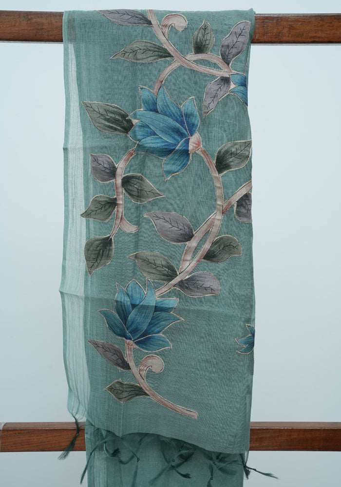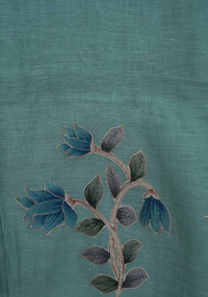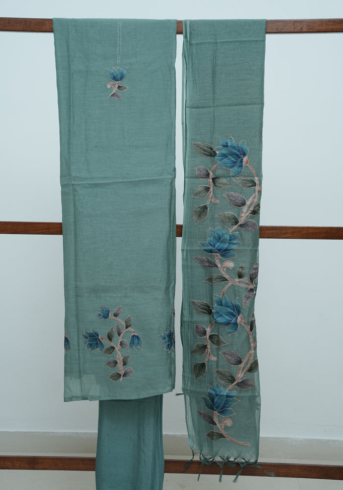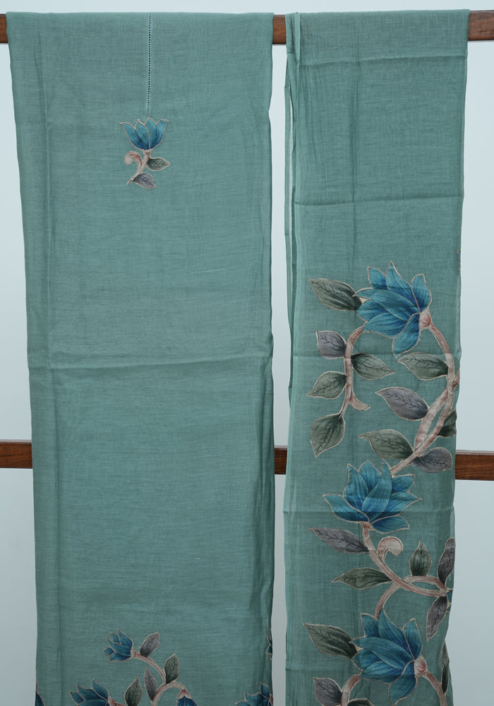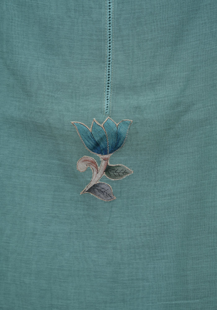 Blue Unstitched Malai Chanderi Salwar Set with Applique Work is OUT OF STOCK currently and available on pre-payment only. Order now for delivery within 2 weeks.