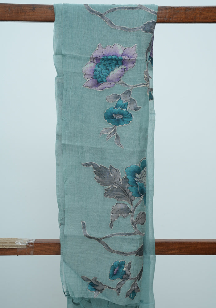 Blue Unstitched Malai Chanderi Salwar Set with Applique Work