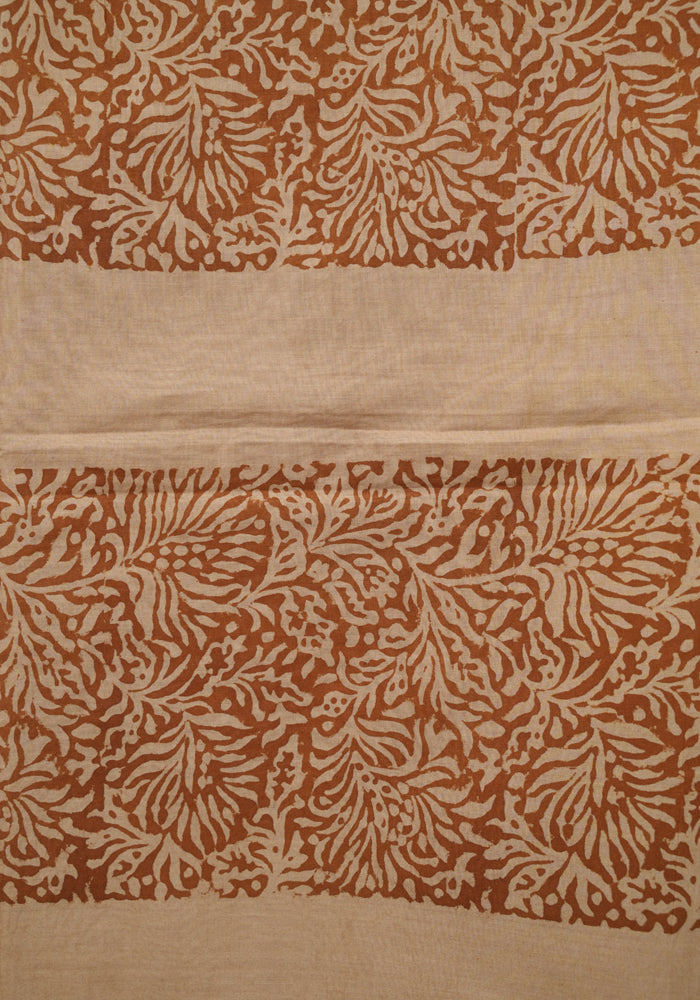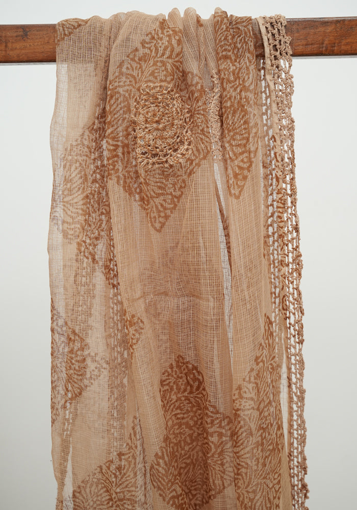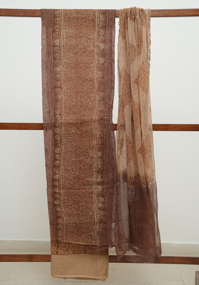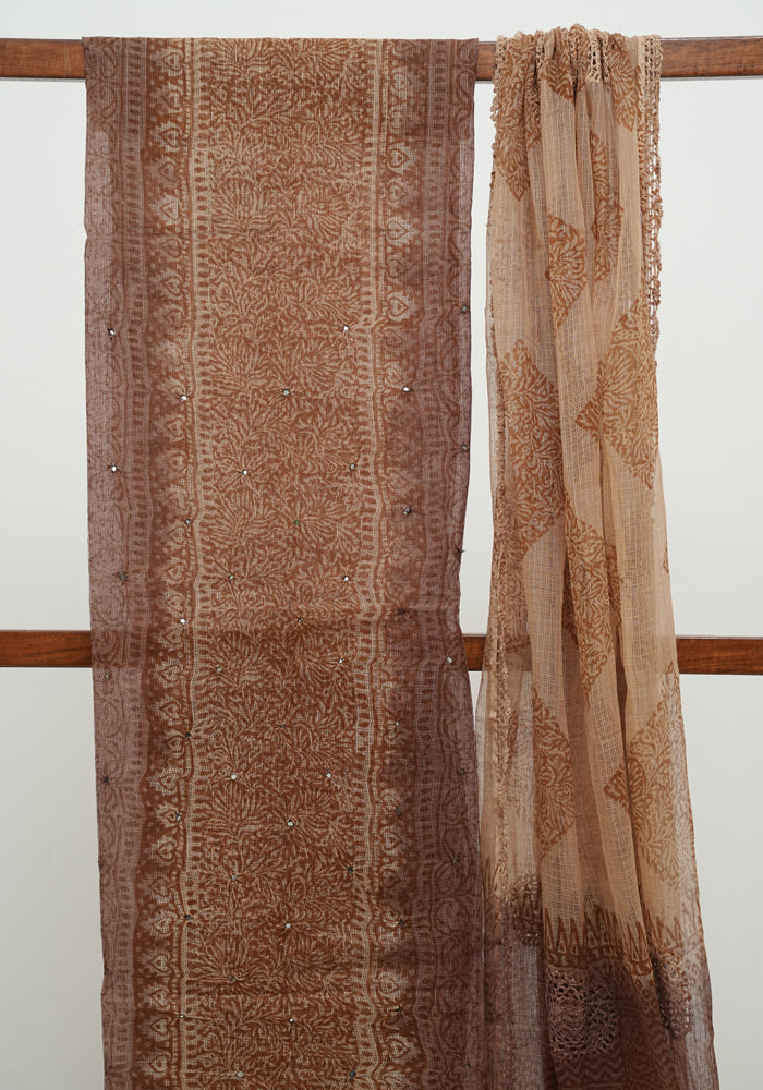 Brown and Light Brown Unstitched Block Printed Kota Salwar set With Crochet Dupatta
