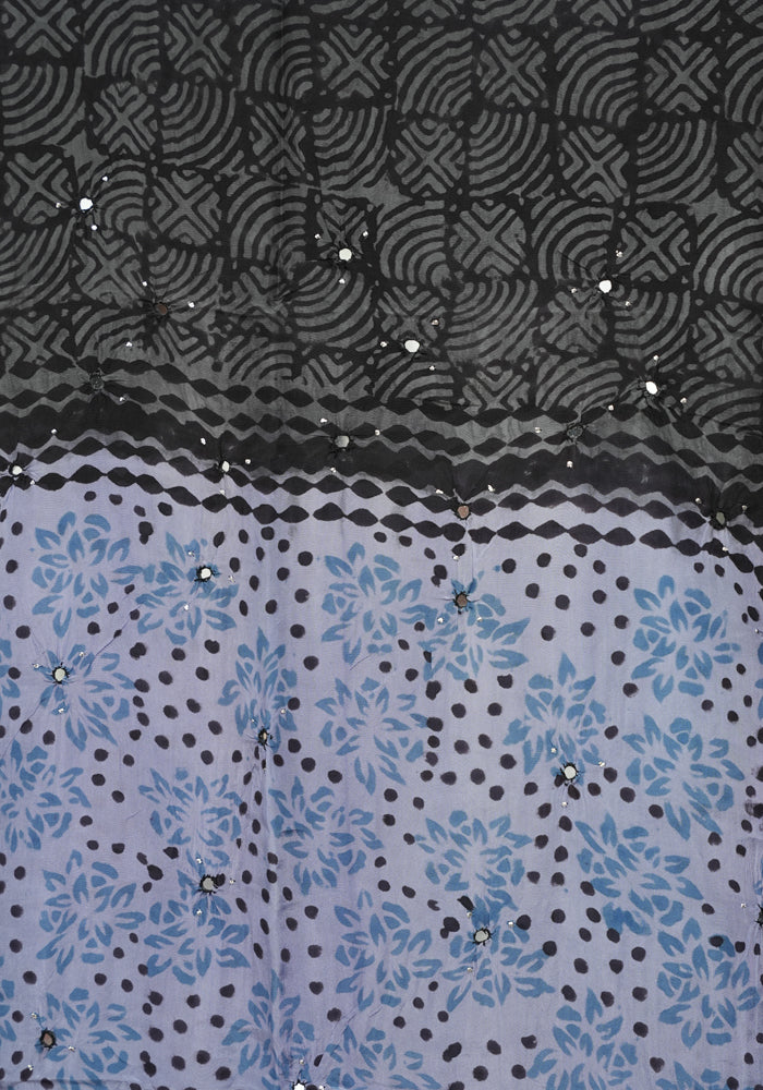 Cobalt Blue and Grey Unstitched Blockprinted Semi Organza Salwar Set With Crochet Dupatta is OUT OF STOCK currently and available on pre-payment only. Order now for delivery within 2 weeks.