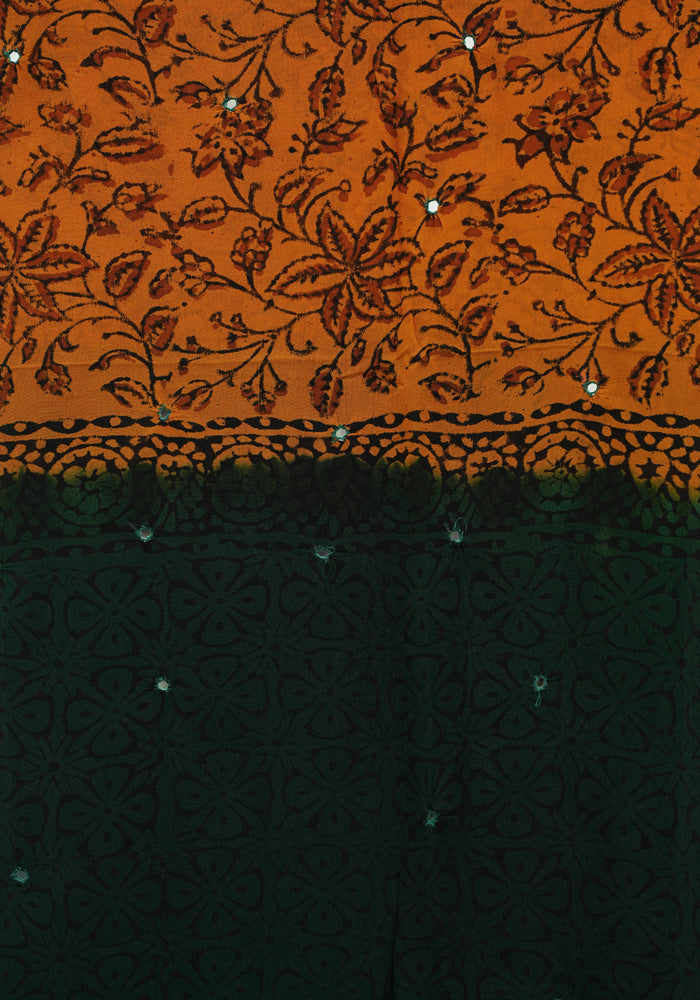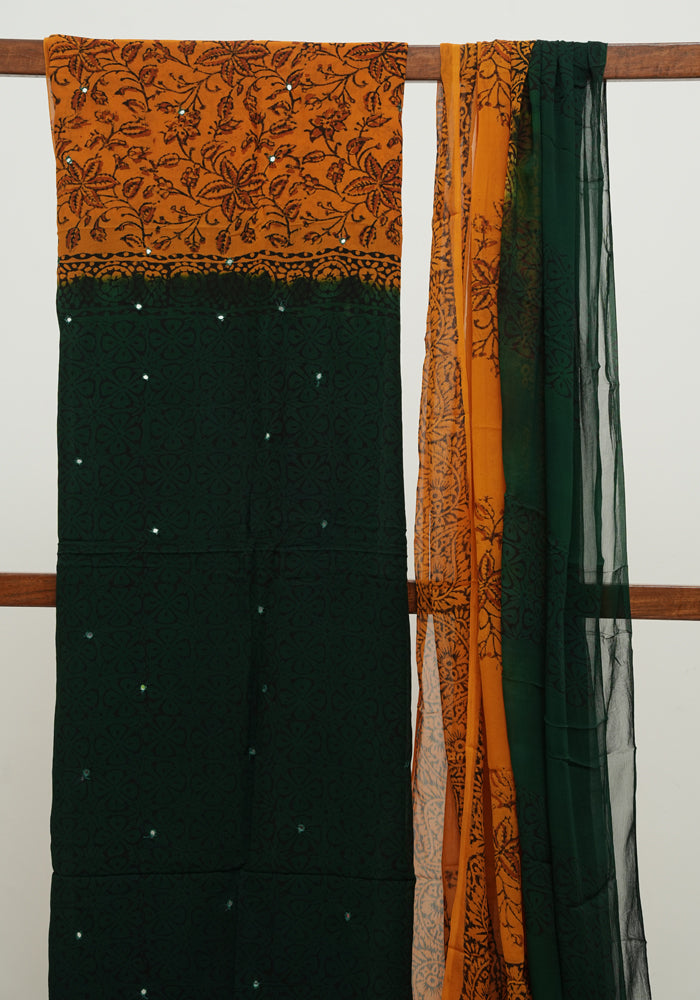 Dark Green and Mango Yellow Unstitched Georgette Salwar Set with Mirror Work