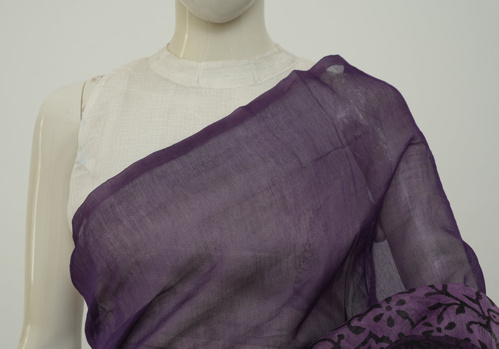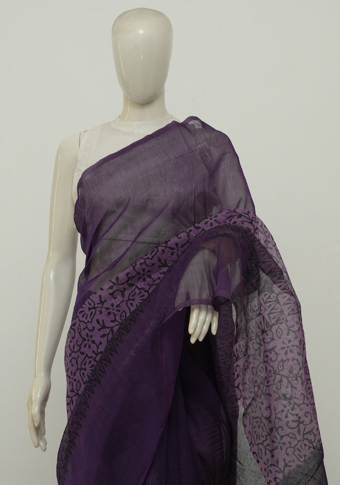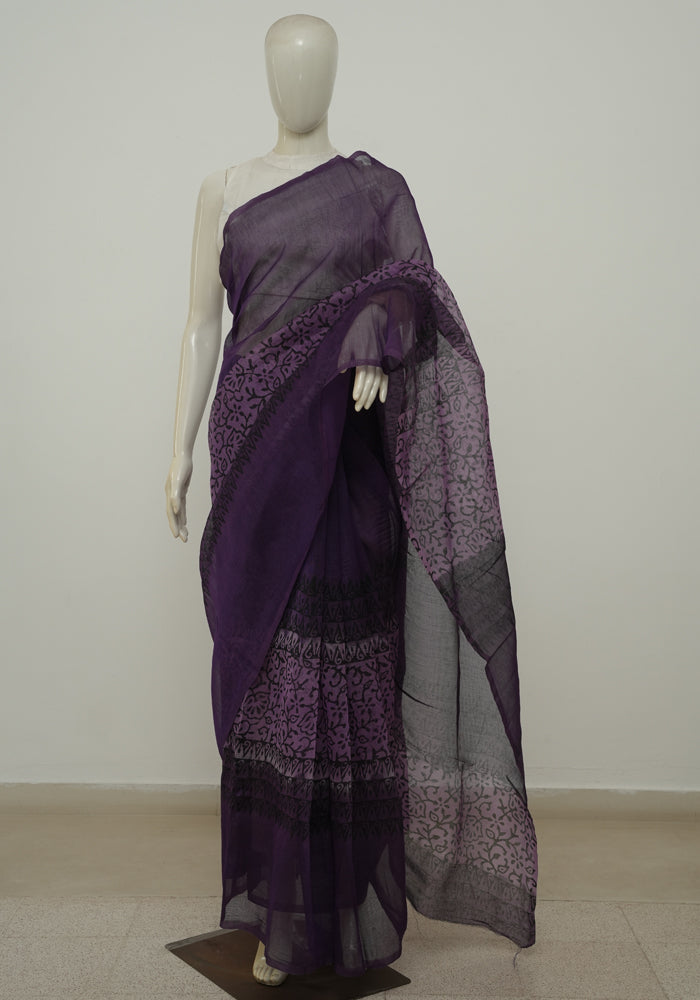 Dark Purple and Light Purple Block printed Supernet Kota Saree