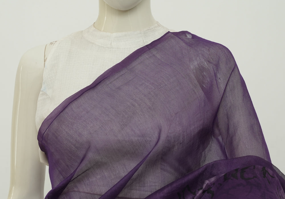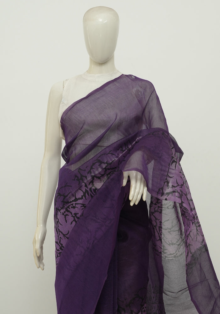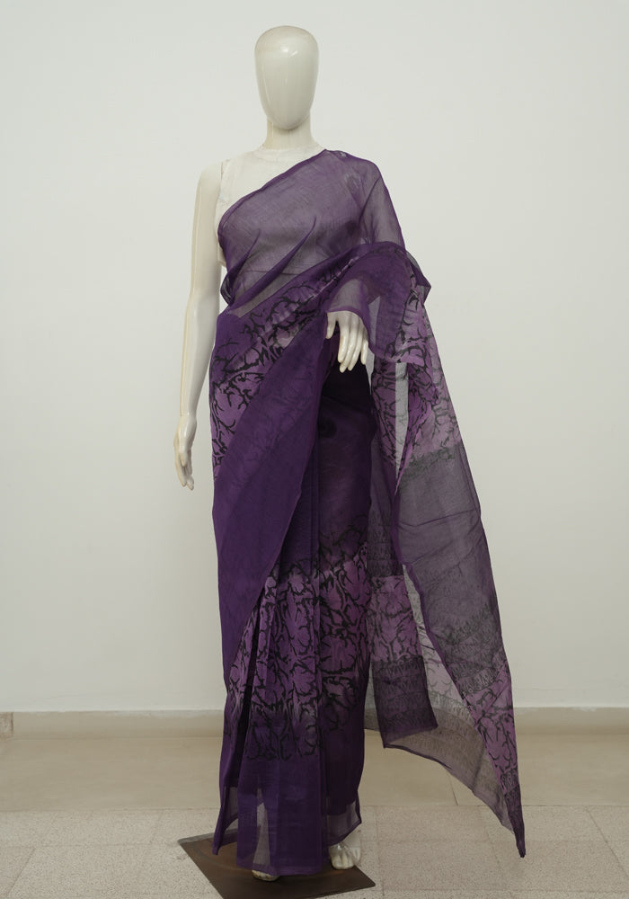 Dark Purple and Light Purple Block printed Supernet Kota Saree