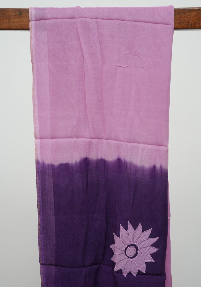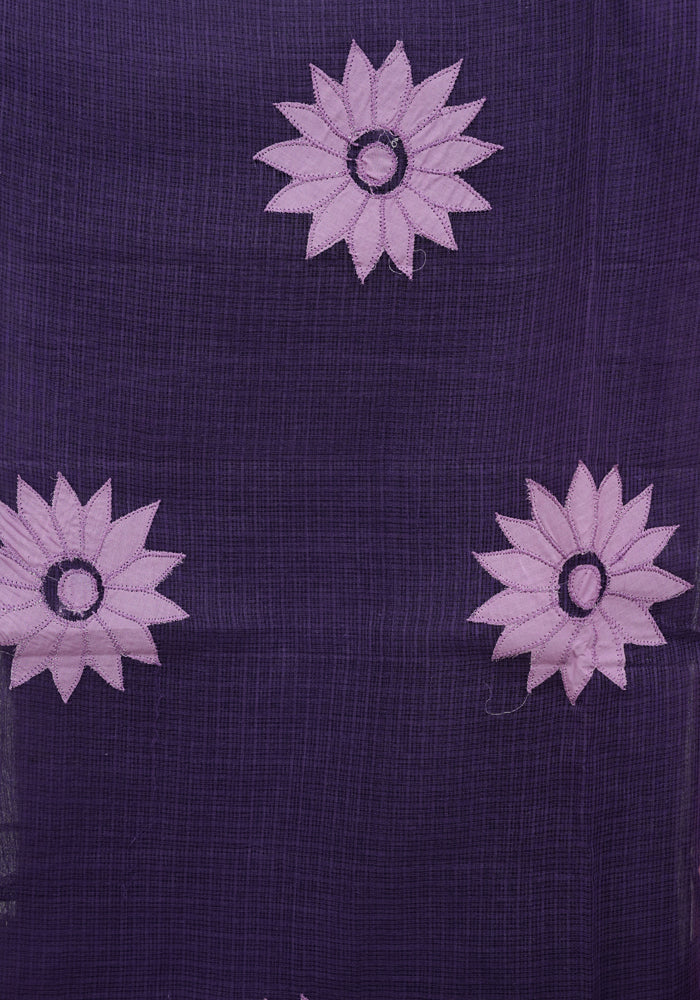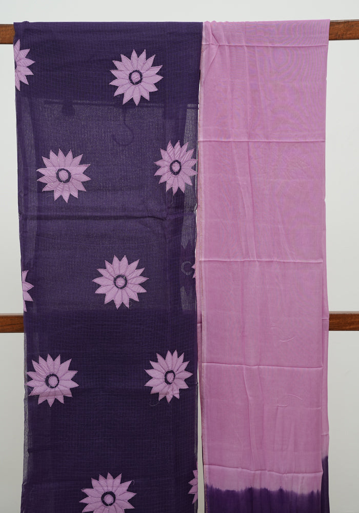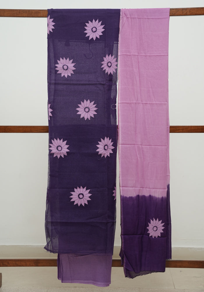 Dark Purple and Light Purple Unstitched Applique Work Kota Salwar Set With Silk Dupatta