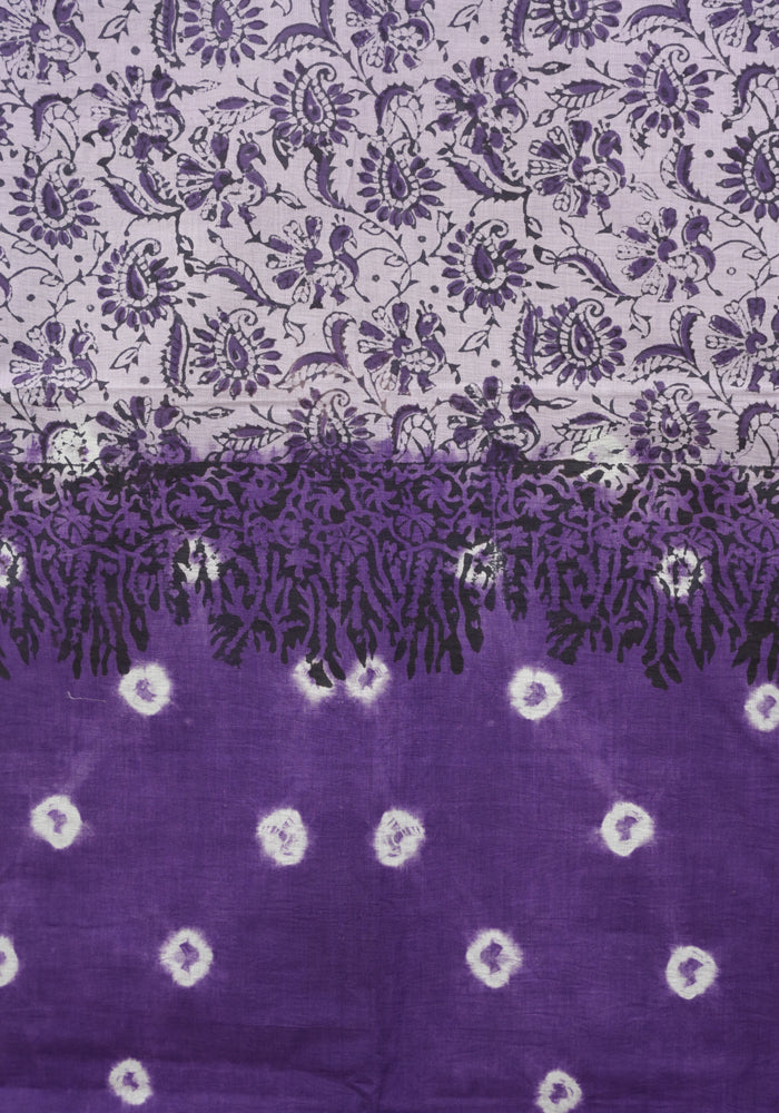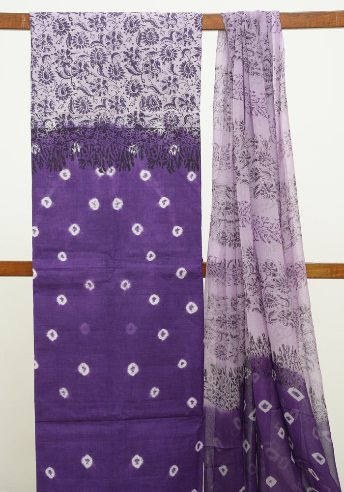 Dark Purple and Light Purple Unstitched Cotton Salwar Set With Bandini