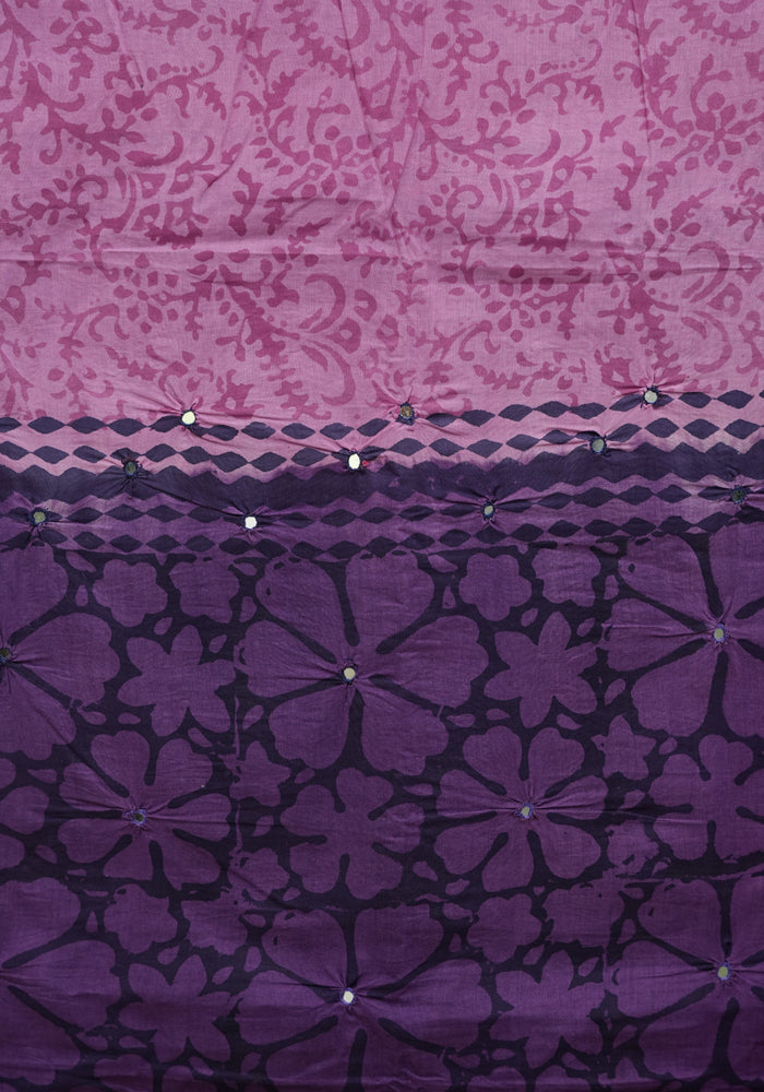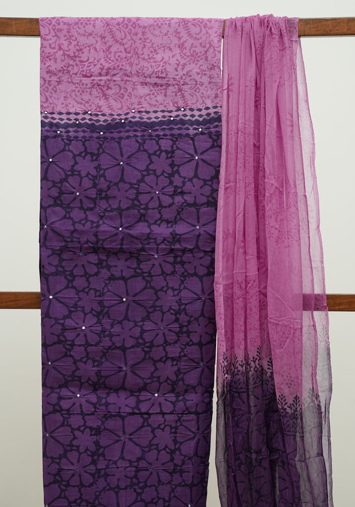 Dark Purple and Light Purple Unstitched Cotton Salwar Set With Mirror Work