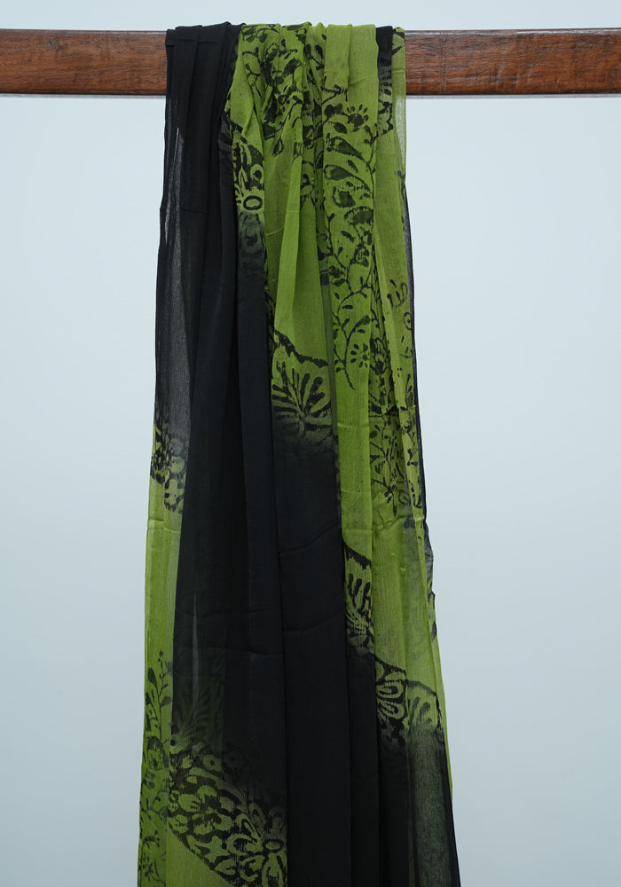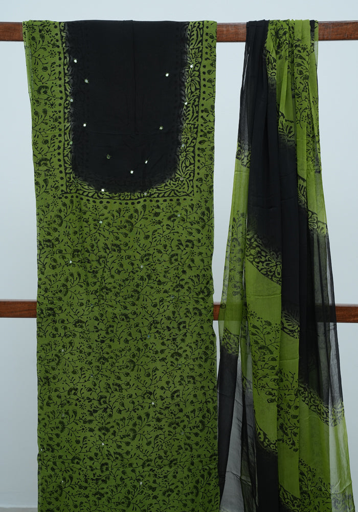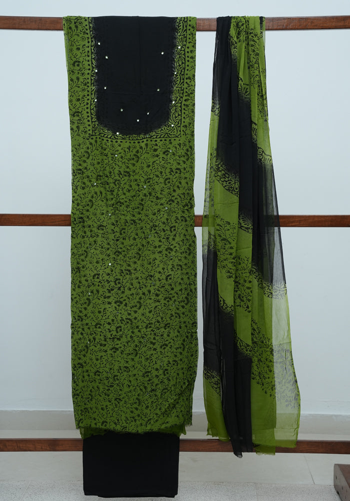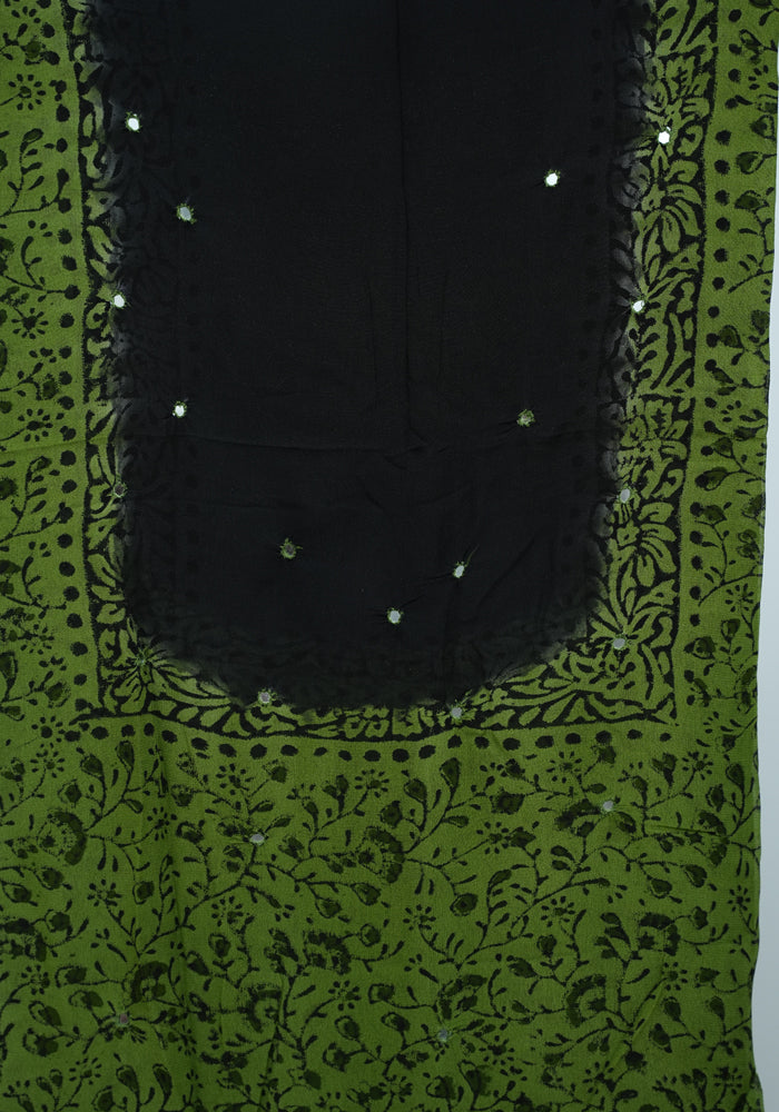 Green and Black Unstitched Georgette Salwar Set with Mirror Work