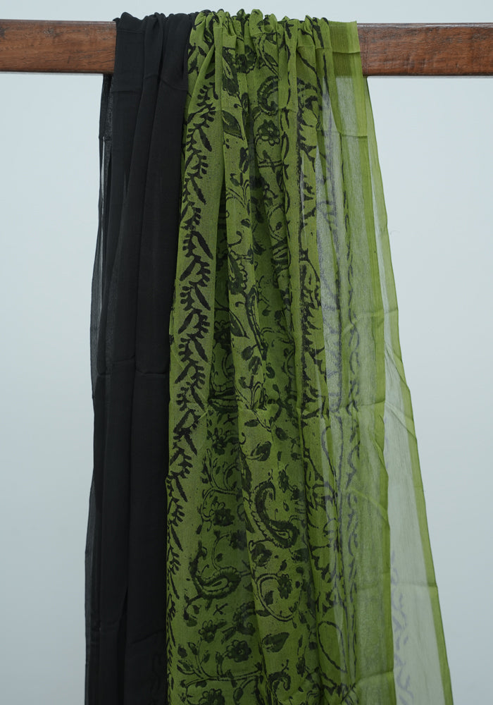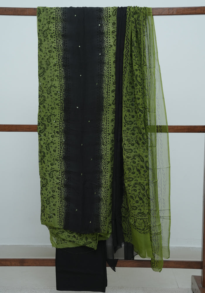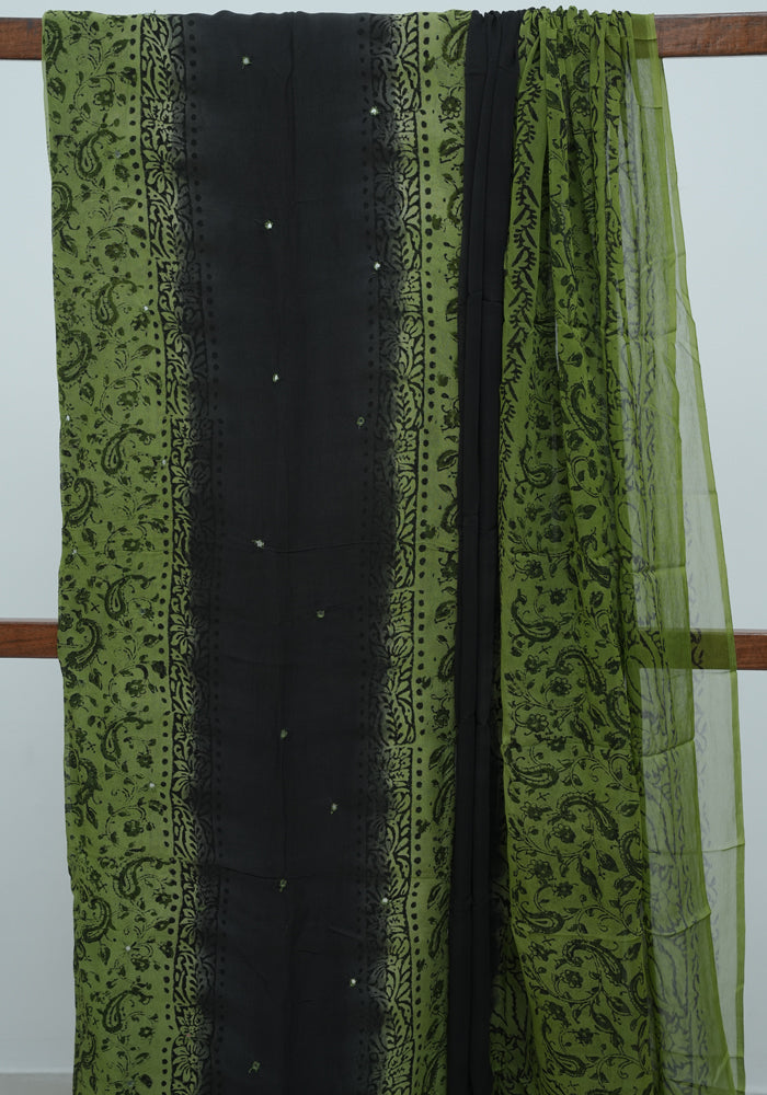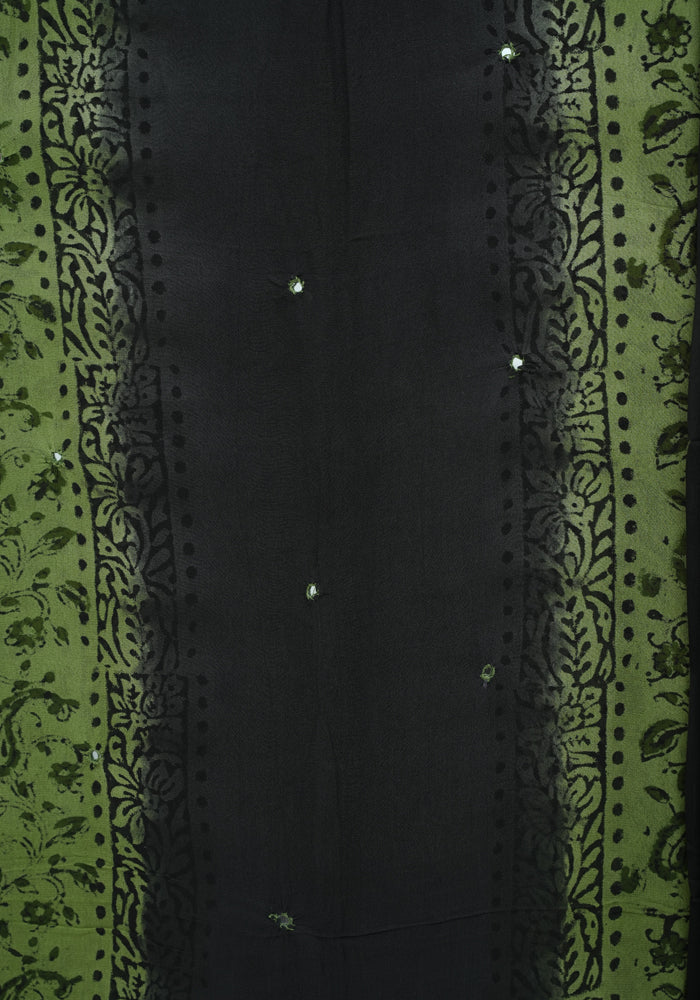 Green and Black Unstitched Georgette Salwar Set with Mirror Work