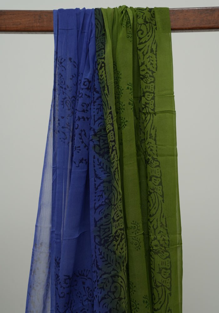 Desically Ethnic brings to you our newest offering, Unstitched Block Printed Chennur Silk Salwar Sets . All our designs are one of kind and they come as a 3 pc set - Top, Bottom and Dupatta.