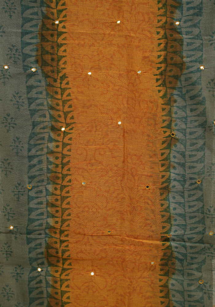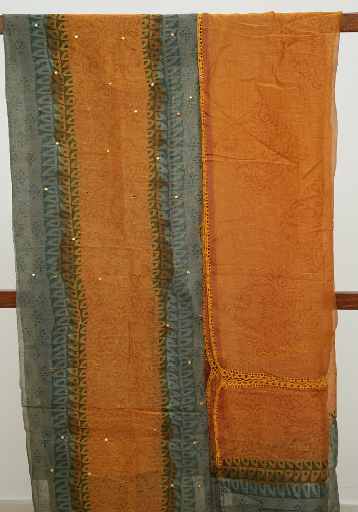 Grey and Mustard Yellow Unstitched Super Net Salwar Set With Mirror Work