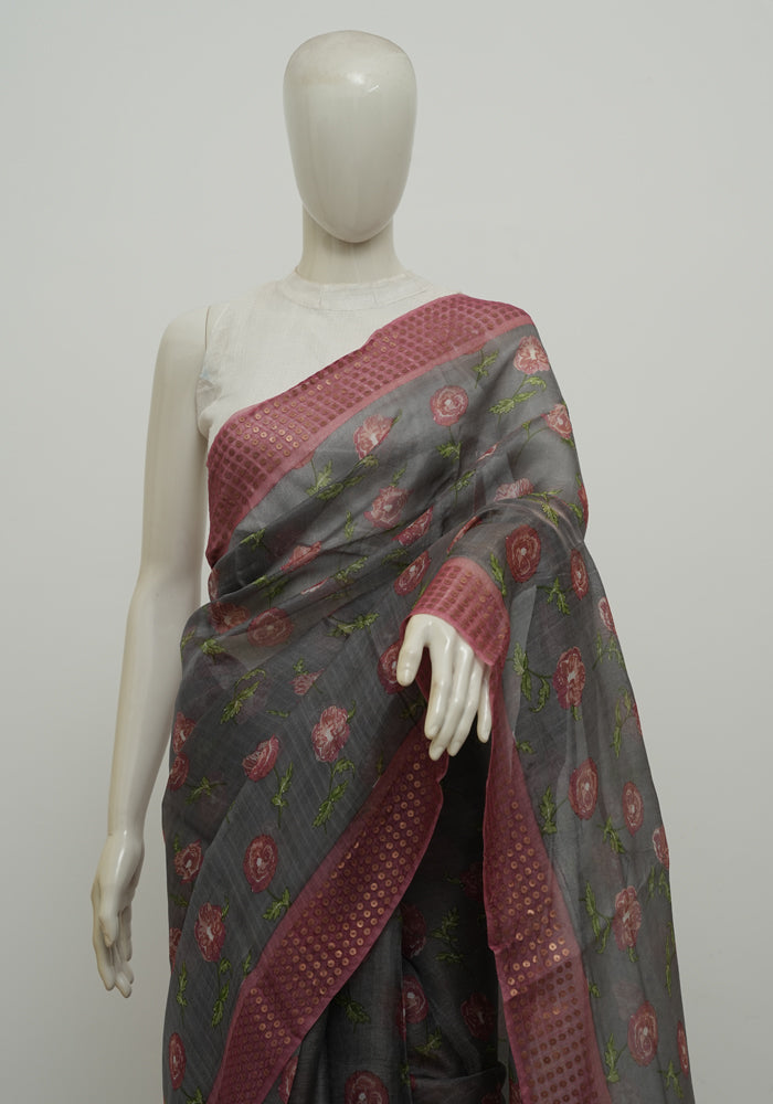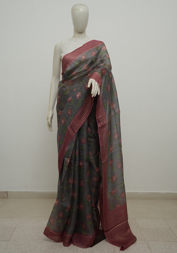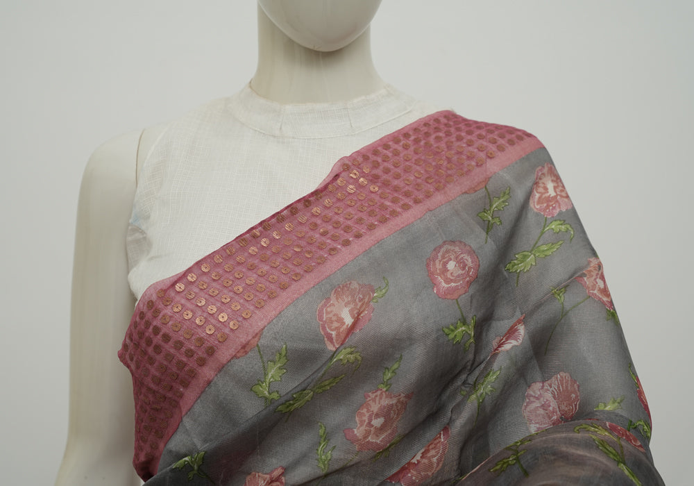 Grey Organza Saree with Digital Print is OUT OF STOCK currently and available on pre-payment only. Order now for delivery within 2 weeks.