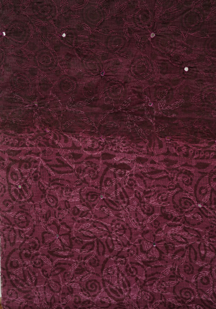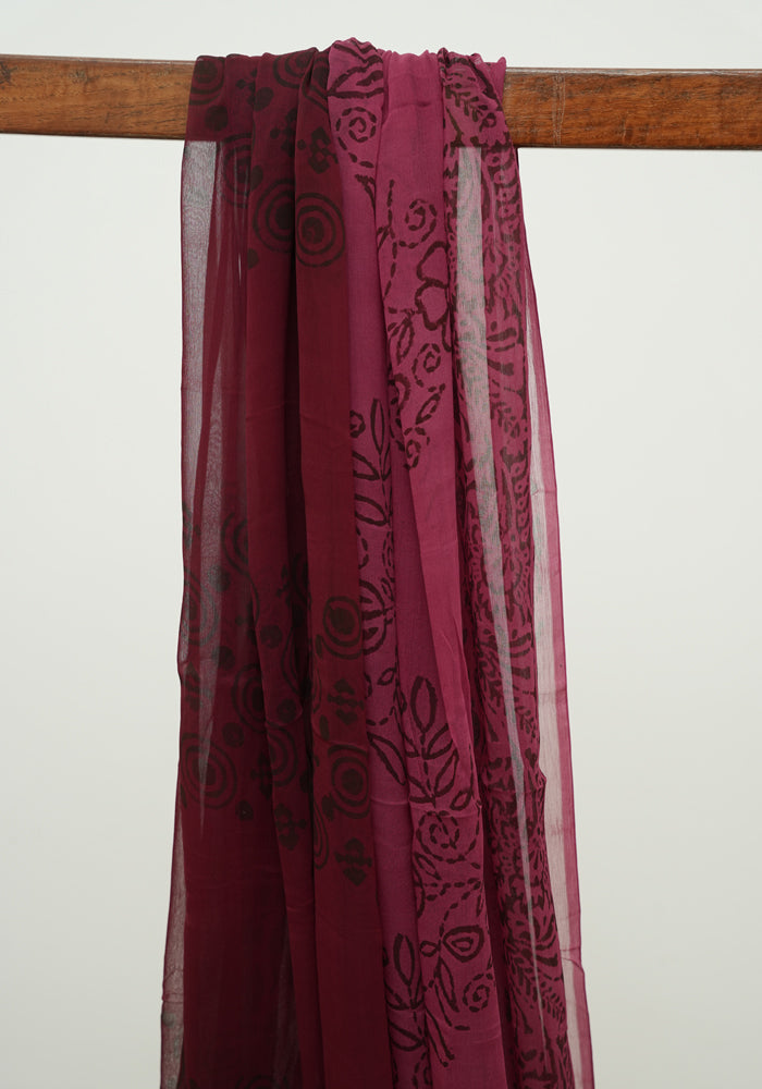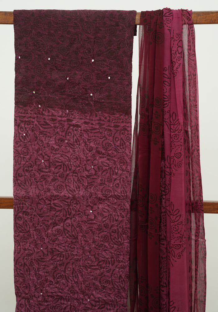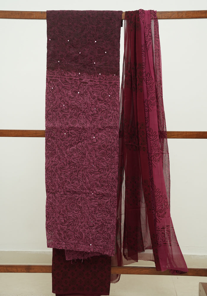 Jamun Red Block Printed Tepchi Kota Unstitched Salwar Set With Mirror Work