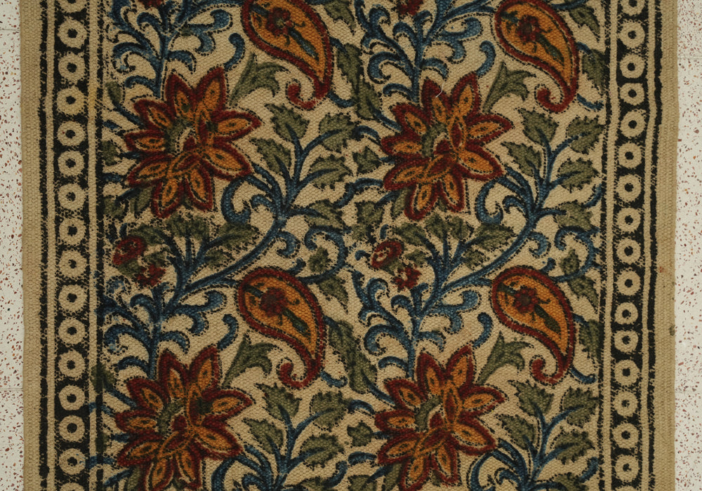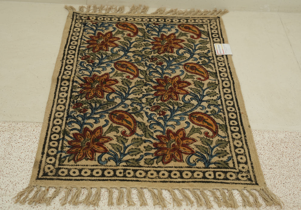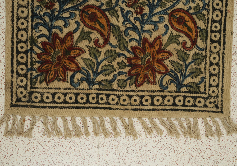 Handcrafted Handloom Cotton Dhurrie Doormat with Kalamkari hand blockprinted using natural dyes. This rug/Doormat adds a lovely ethnic touch to your space.