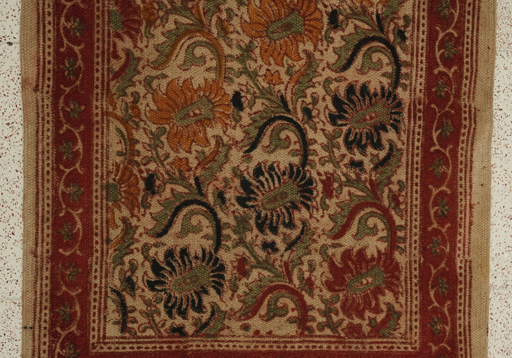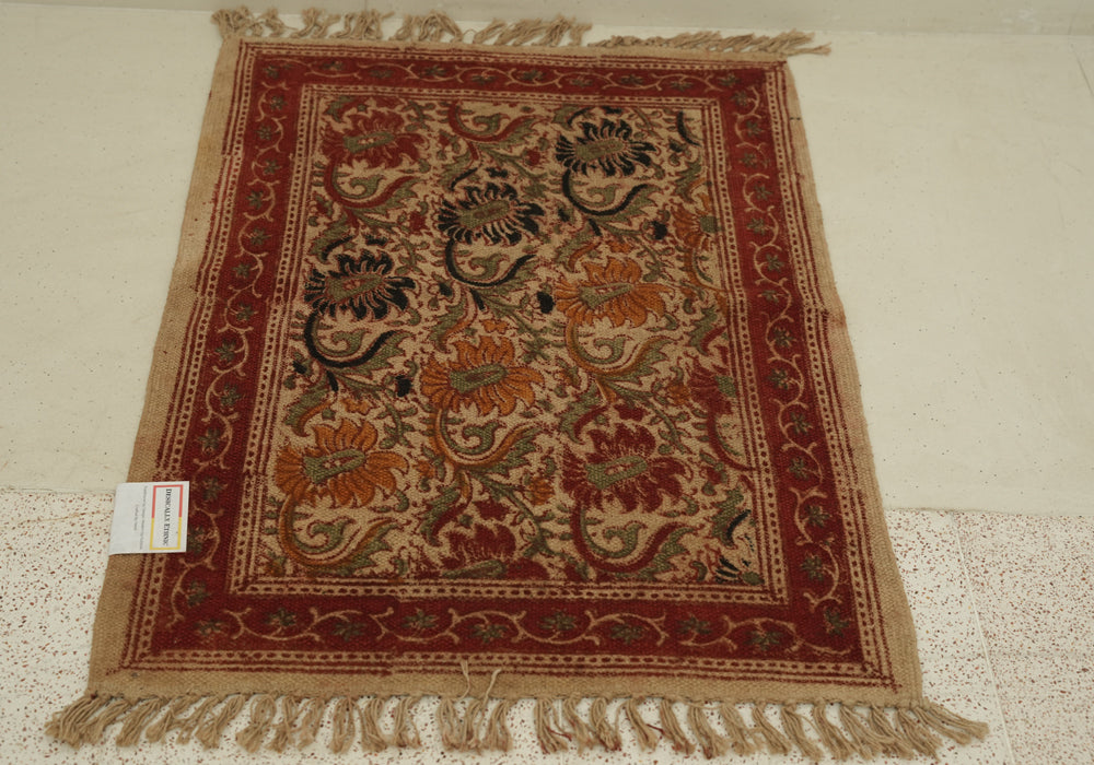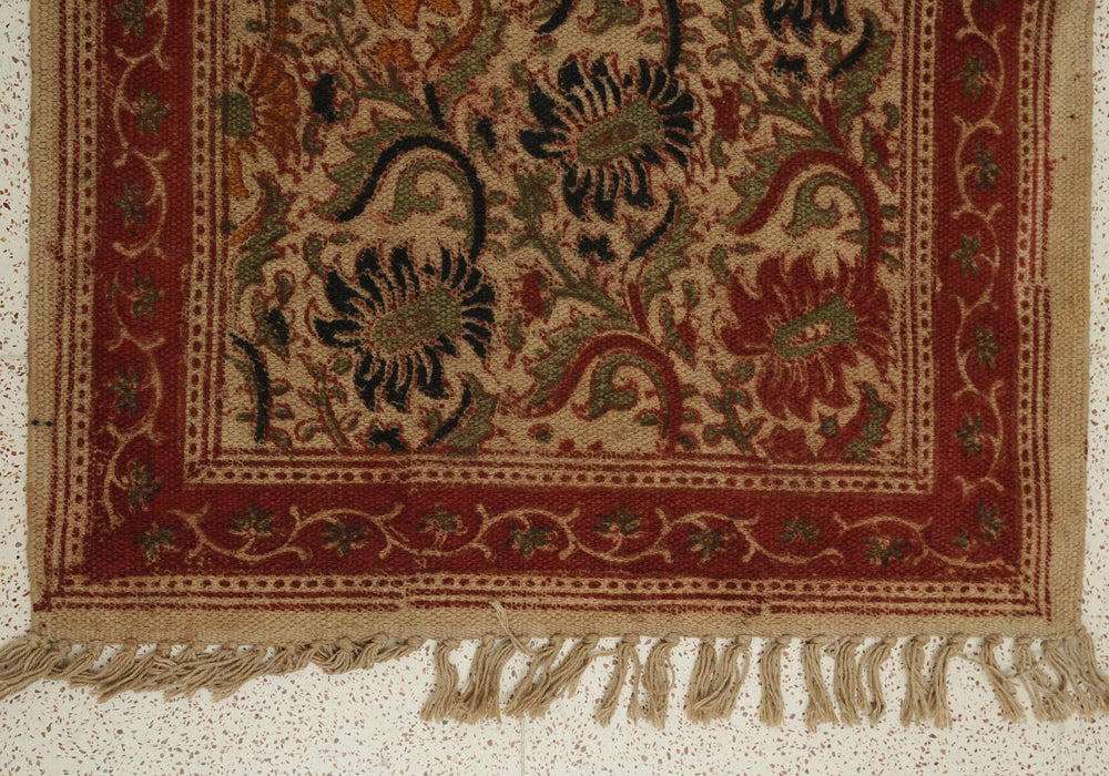 Handcrafted Handloom Cotton Dhurrie Doormat with Kalamkari hand blockprinted using natural dyes. This rug/Doormat adds a lovely ethnic touch to your space.