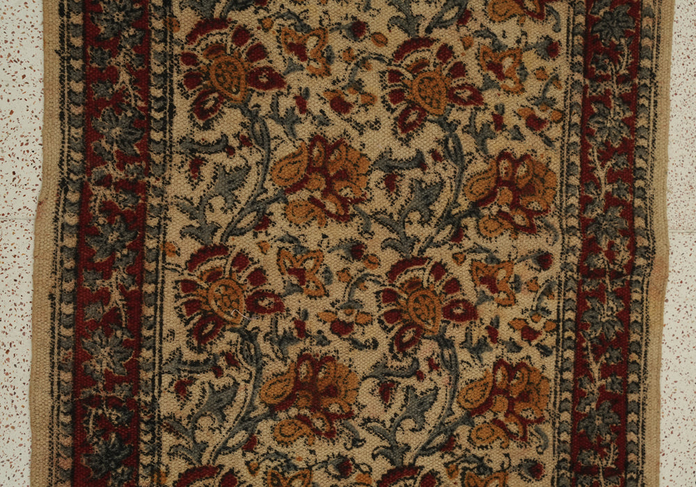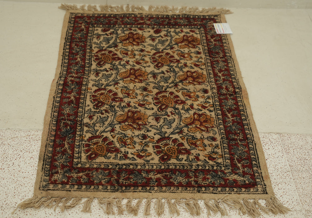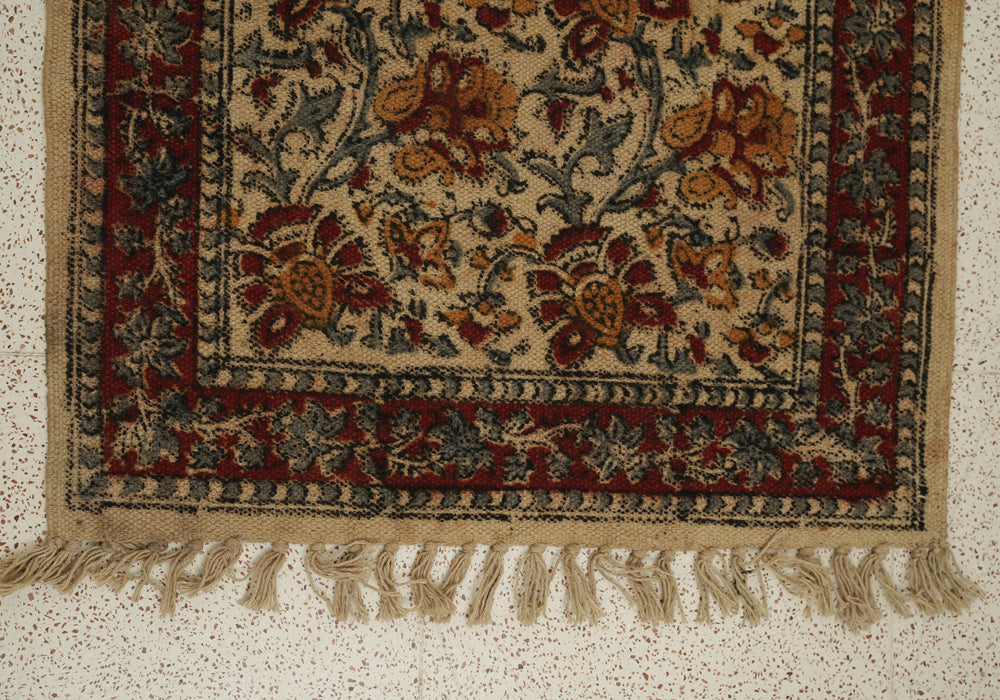 Handcrafted Handloom Cotton Dhurrie Doormat with Kalamkari hand blockprinted using natural dyes. This rug/Doormat adds a lovely ethnic touch to your space.