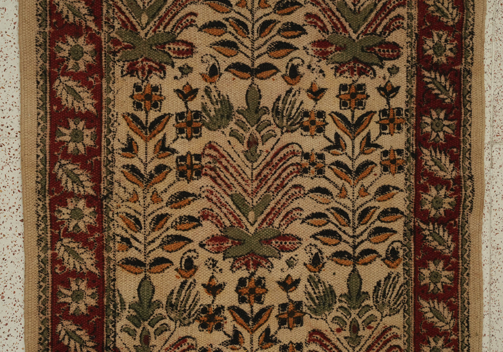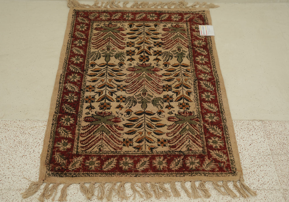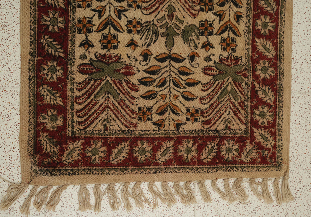 Handcrafted Handloom Cotton Dhurrie Doormat with Kalamkari hand blockprinted using natural dyes. This rug/Doormat adds a lovely ethnic touch to your space.
