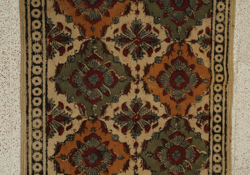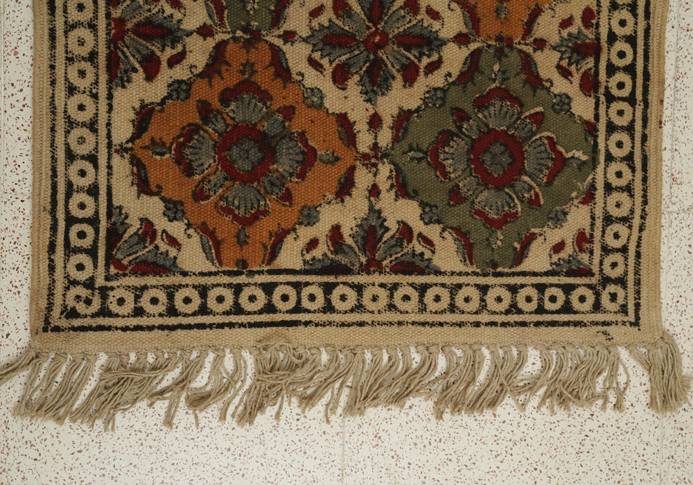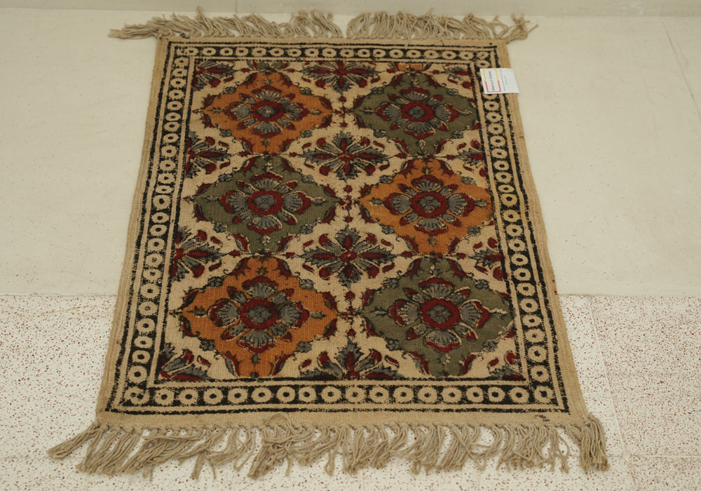 Handcrafted Handloom Cotton Dhurrie Doormat with Kalamkari hand blockprinted using natural dyes. This rug/Doormat adds a lovely ethnic touch to your space.