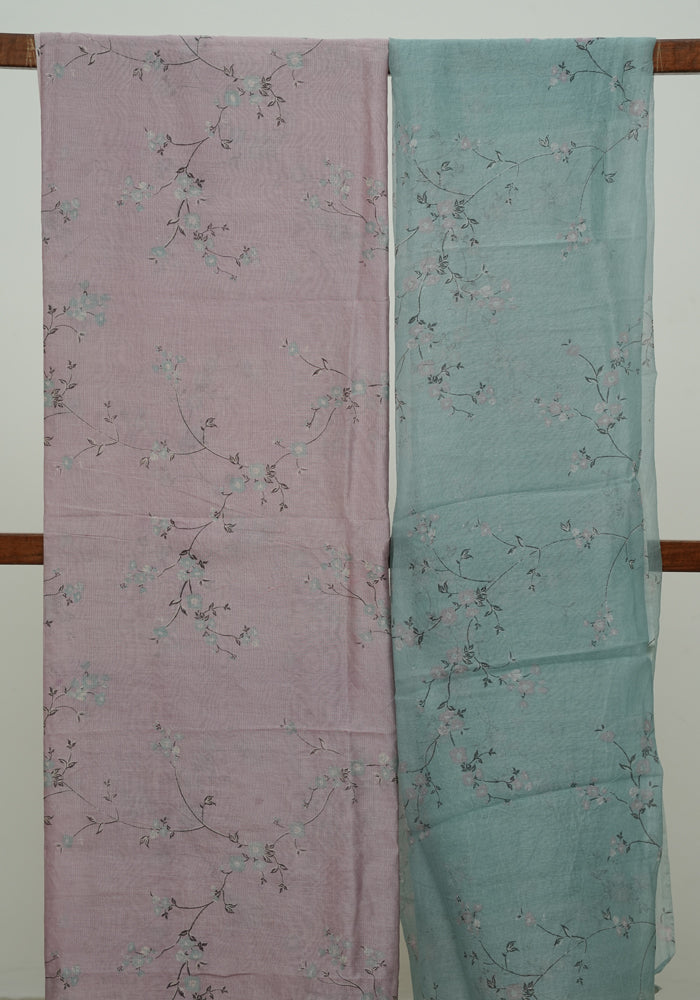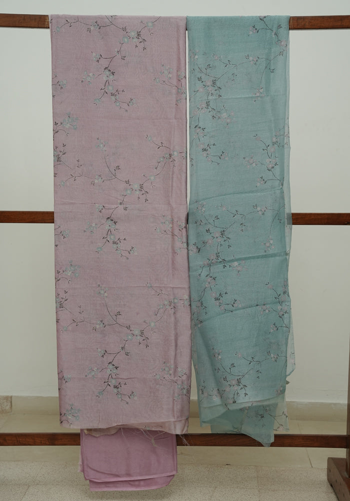 Lavender and Pastel Blue Unstitched Chanderi Salwar Set with Supernet Dupatta